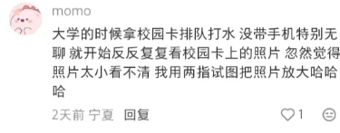 大学的时候拿校园卡排队打水没带手机,特别无聊,就开始反反复复看校园卡上的照片 ,忽然觉得照片太小看不清 ,我用两指试图把照片放大,哈哈哈