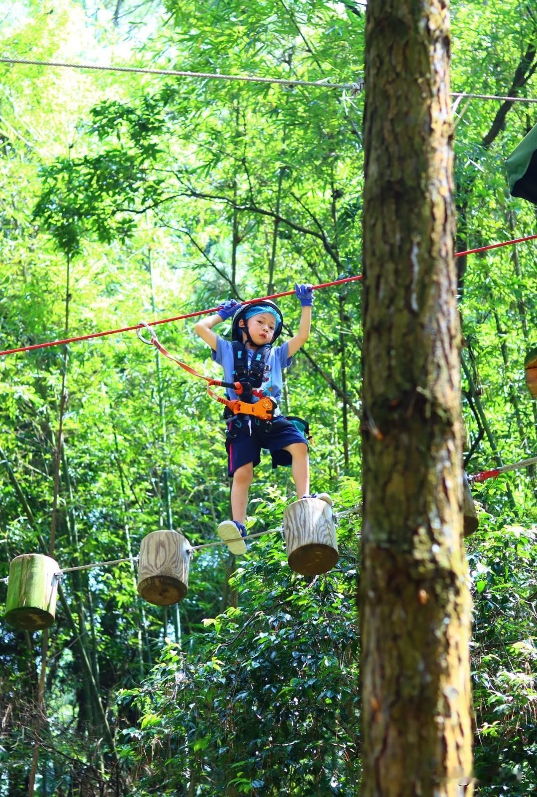 我家这娃子真是胆子大[捂脸]!这次带他出去,硬是要体验不一样的感觉,生拉硬拽的让我陪他玩探索,看,这小胳膊使劲拽着红绳,脚踩俩圆木墩子晃悠,活像只挂在树藤上的小猴子🐒。安全头盔歪到后脑勺,手套倒戴得挺标准——看来平时没少偷偷模仿消防员叔叔啊哈哈[笑哭][笑哭]。 他越用劲往前挪,小皮鞋底蹭得木头越喊疼,手抓得绳子都快勒出印子了。咱小时候爬树摔屁股墩子的怂样还在眼前晃呢,现在的孩子装备齐全,连冒险都这么有仪式感~ 其实成长哪有啥安全绳啊,不就是像他这样,攥紧拳头踩稳每一步,哪怕晃得像风中的叶子,也得硬着头皮往前闯。你看他那小身板绷得笔直,说不定心里正嘀咕:妈妈说的“勇敢",原来就是脚软了也不喊停呀!