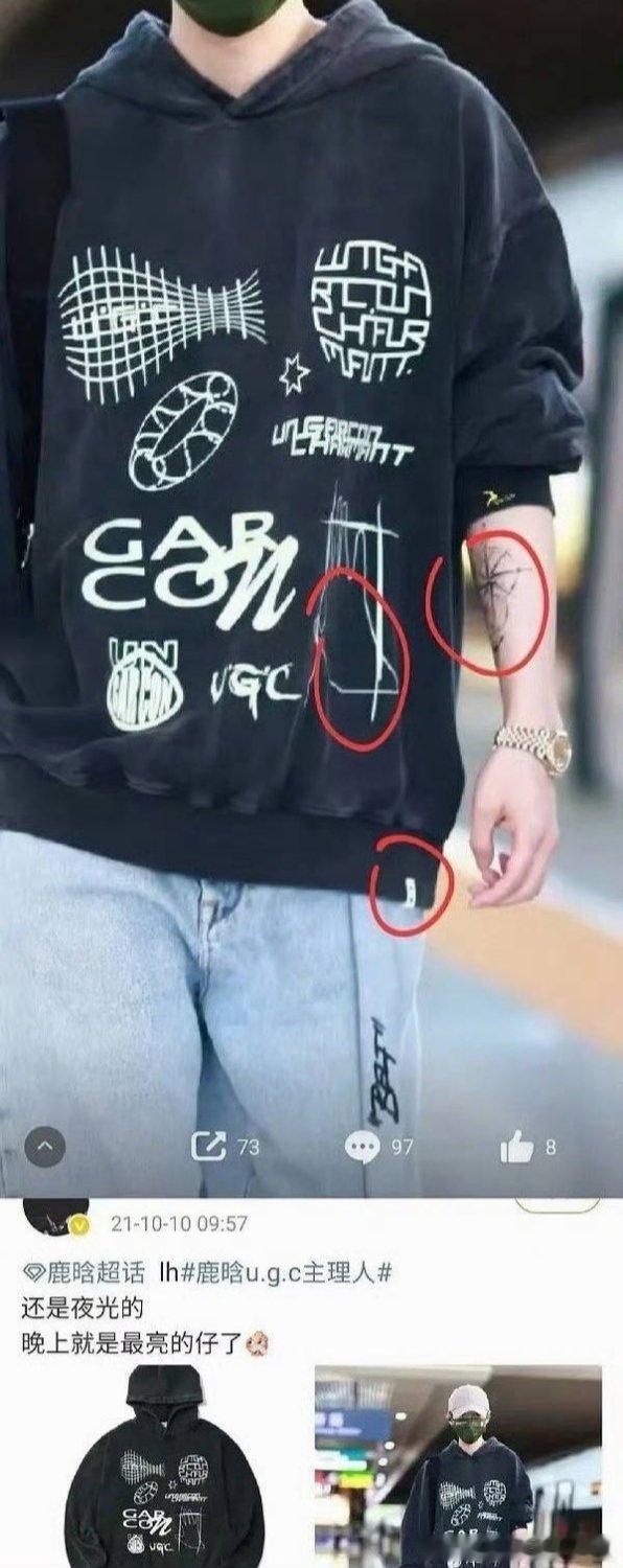 粉丝澄清了鹿晗纹身以后,发现衣服花纹也一样,这怎么洗