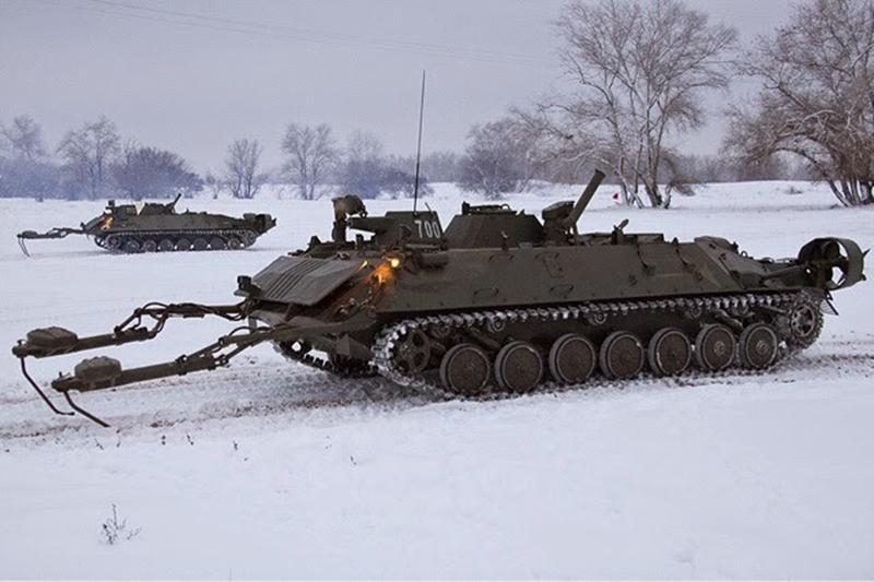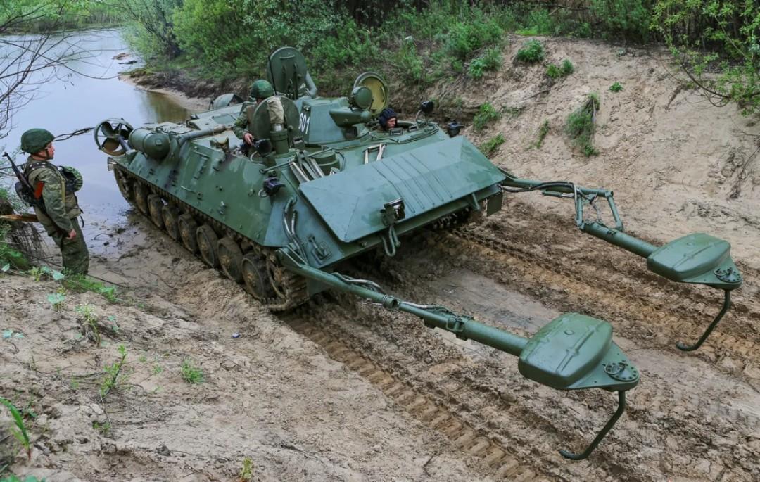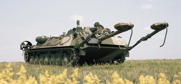 配备声呐的“甲壳虫”工程侦察车 工程侦察车的主要任务:发现雷场、测量渡口深度、检查土壤承载力。 “甲壳虫”工程侦察车以BMP-1步战车为基础,但车体拉长,增加一对负重轮。车体分成7个隔舱,用于设备存放和保持水上浮力。为了探测水雷,它配备了一台小型工程声呐。 新野郎曰:“甲壳虫工程侦察车与MTLB装甲运输车非常像。”