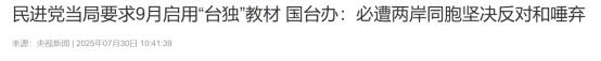 利用教材“洗脑”!2025年7月30日,国台办大力批评民进党当局试图启用“台独”教材一事!台前“陆军总司令”:国民党出过上得了台面的领袖吗? 相信很多朋友都或多或少的知道日本教材事情,日本政府为了掩盖历史罪行,一度在国内的教材方面下手。 这一点就引起了国际的唾弃,当日本试图通过教材来淡化历史罪行的时候,有一个群体也在学习日本的这一行为,该群体就是台湾岛内的台独分子。 以赖清德为首的台当局是彻头彻尾的台独集团,为了能够更好的给台湾青少年“洗脑”,台当局就盯上了台湾岛内的教材。 就在2025年7月15日的时候,根据媒体的报道,台湾已经完成了13篇识读所谓“大陆威胁”的“国家认同教材”。并且当时透露,预计在岛内9月新学期开学之后陆续使用。 此事引起国际高度关注,随着讨论热度越来越大,2025年7月30日的时候,国台办对此事做出了回应。国台办直接指出,台当局的这一行为是数典忘祖的倒行逆施,必将遭到两岸同胞的坚决反对和唾弃。 当局的意图非常的明显,那就是通过篡改教材,来给台湾新一代青年“洗脑”“台湾不属于中国”这一观点。 针对这件事情,台湾岛内的专家更是进行了大量的评判。篡改教材这件事情不仅跟民进党有关,更跟国民党有关。 台前“陆军总司令”就曾发表过关于此事的言语,据他本人表示,当时马英九用台独分子任教育部长,故意不改台独教科书。以此来指出,国民党就没有出过上得了台面的领袖这一观点。 对此,您怎么看?欢迎评论区留言您的看法,我们一起讨论一下。 (信息来源:13篇“台独”教材将入岛内课堂 舆论痛斥“洗脑”教育-中国新闻网) (信息来源:民进党当局要求9月启用“台独”教材 国台办:必遭两岸同胞坚决反对和唾弃-央视新闻) 【免责声明】:文中部分观点仅为个人看法,请理性阅读。