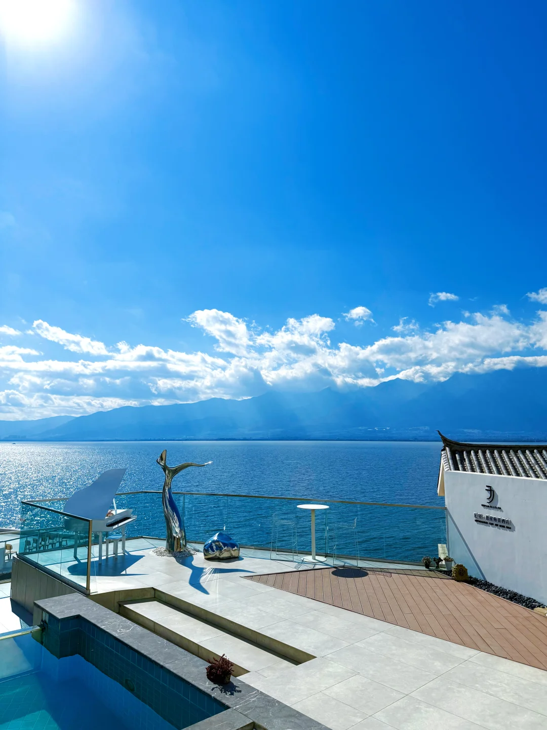 在洱海边的绝美民宿 站在观景台上眺望一望无垠的洱海~ 洱海的美色尽收眼底啦 悬崖海景的魅力谁懂 阳光洒下波光粼粼的海面 蓝色泳池和蓝色海面链接美到失语 来大理必体验的海景民宿 氛围感拉满 酒店环境超好 随手拍出大片! 很适合穿浅色的衣服 店里还送旅拍 体验感拉满 大理民宿海景民宿洱海民宿大理拍照大理旅游大理洱海大理民宿推荐洱海拍照洱海民宿拍照洱海海景民宿洱海民宿推荐