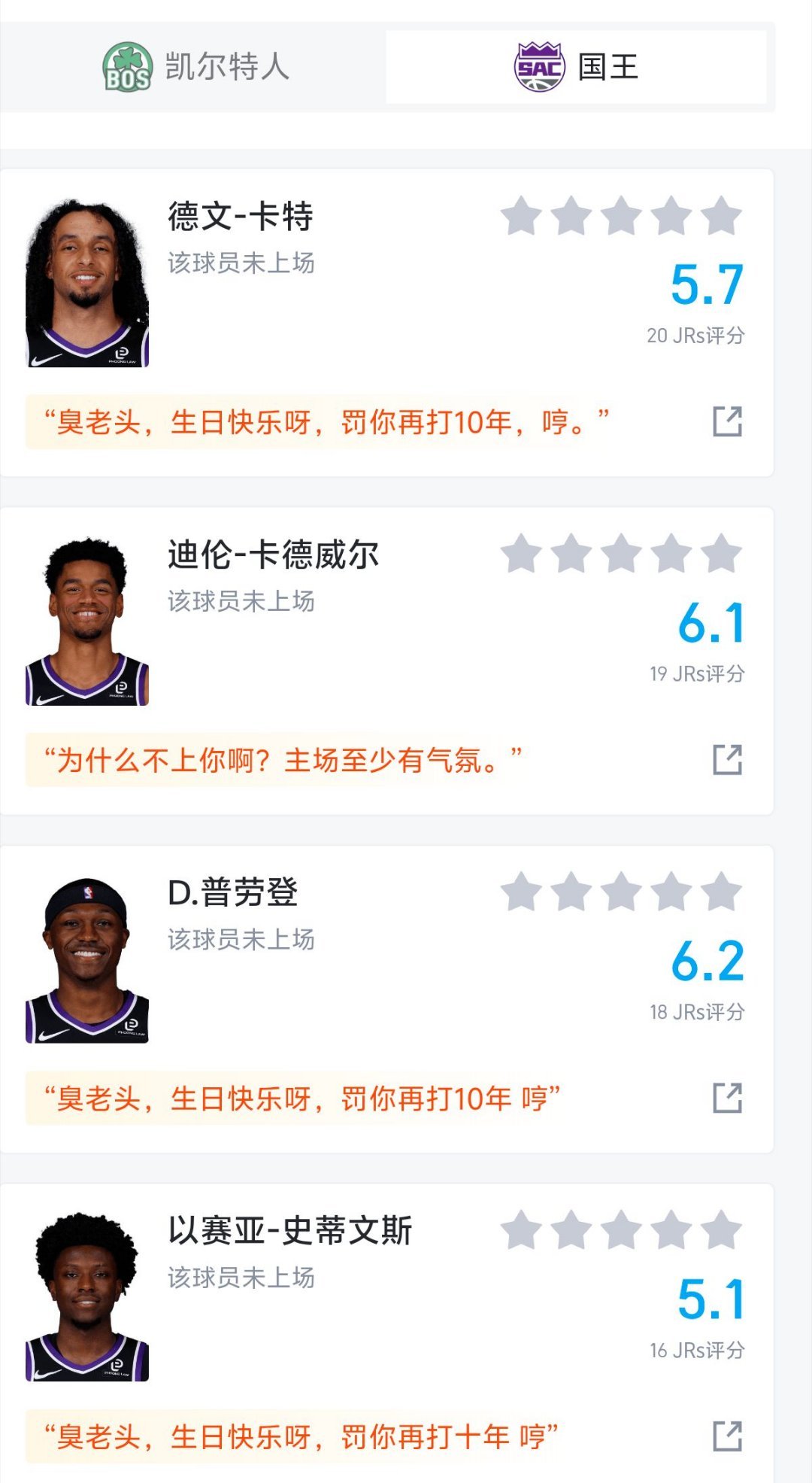 詹姆斯28+10评分8.7,东契奇45+14才7.1,UC直播间这评分合理吗??