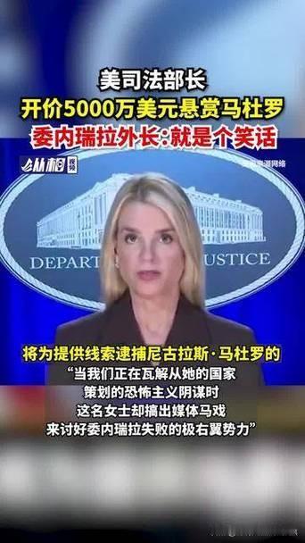 真是法治国家,国际笑话!美国司法部长称马杜罗及其夫人已在美国被起诉。你搞笑也那么快! 2026年1月3日,美国司法部长宣布委内瑞拉总统马杜罗及其夫人已在美国被起诉,这一事件涉及国际政治与法律行动,引发了广泛关注。 事件经过: 美国司法部长于1月3日通过官方渠道确认马杜罗夫妇已被起诉,具体细节包括:起诉地点在纽约;指控内容涉及腐败及毒品犯罪等;背景上,美国此前已对马杜罗家族成员实施制裁,并加强军事部署以施压委内瑞拉政权。34 事件解读: 此举可能加剧美委关系紧张,并涉及委内瑞拉国内政治局势,美国司法行动被视为施压手段,旨在影响该国政策,而马杜罗政府则指责这是外部干涉。