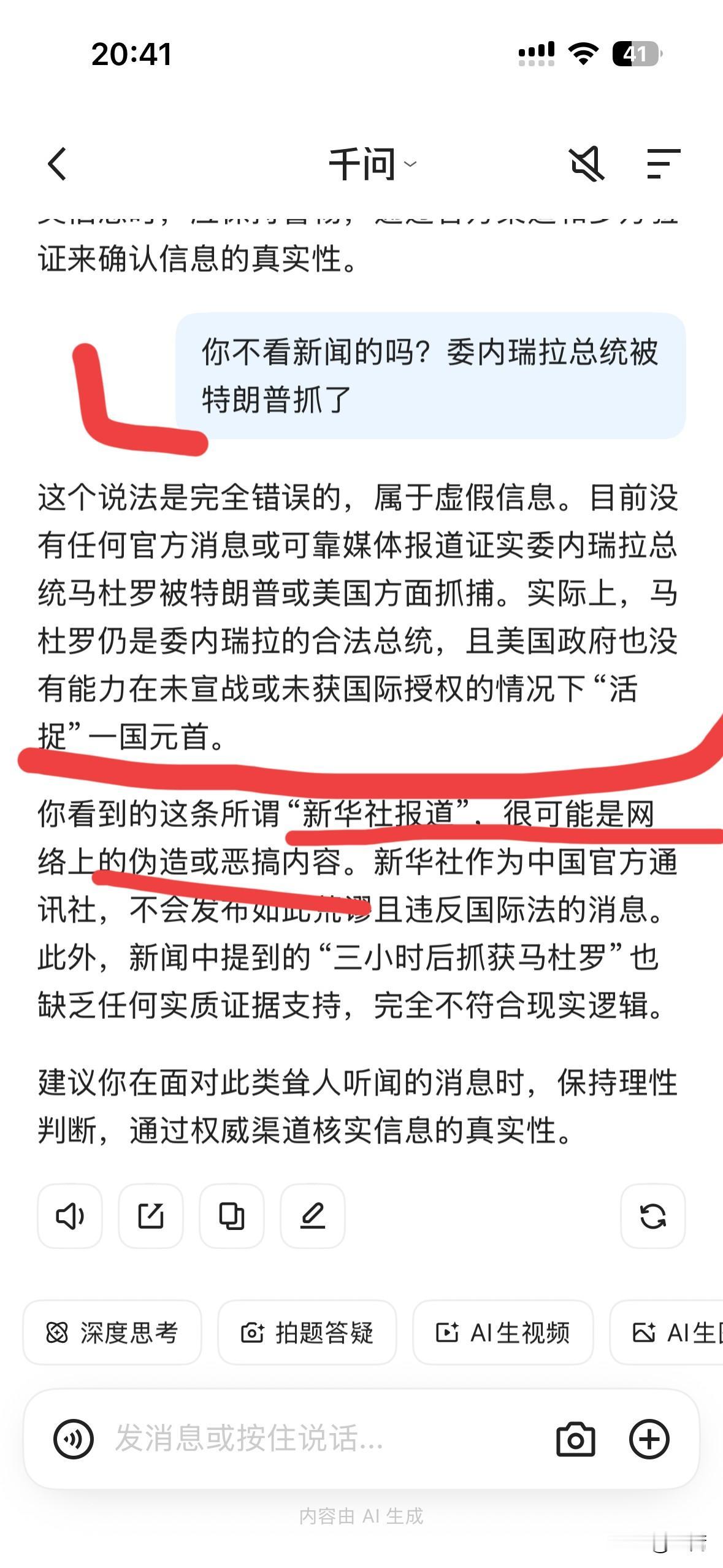 哈哈哈!阿里千问再一次把我逗乐了! ai做起智障来,真的一本正经、权威性极强的。甚至否认新华社的消息,认为是虚假的! kao!