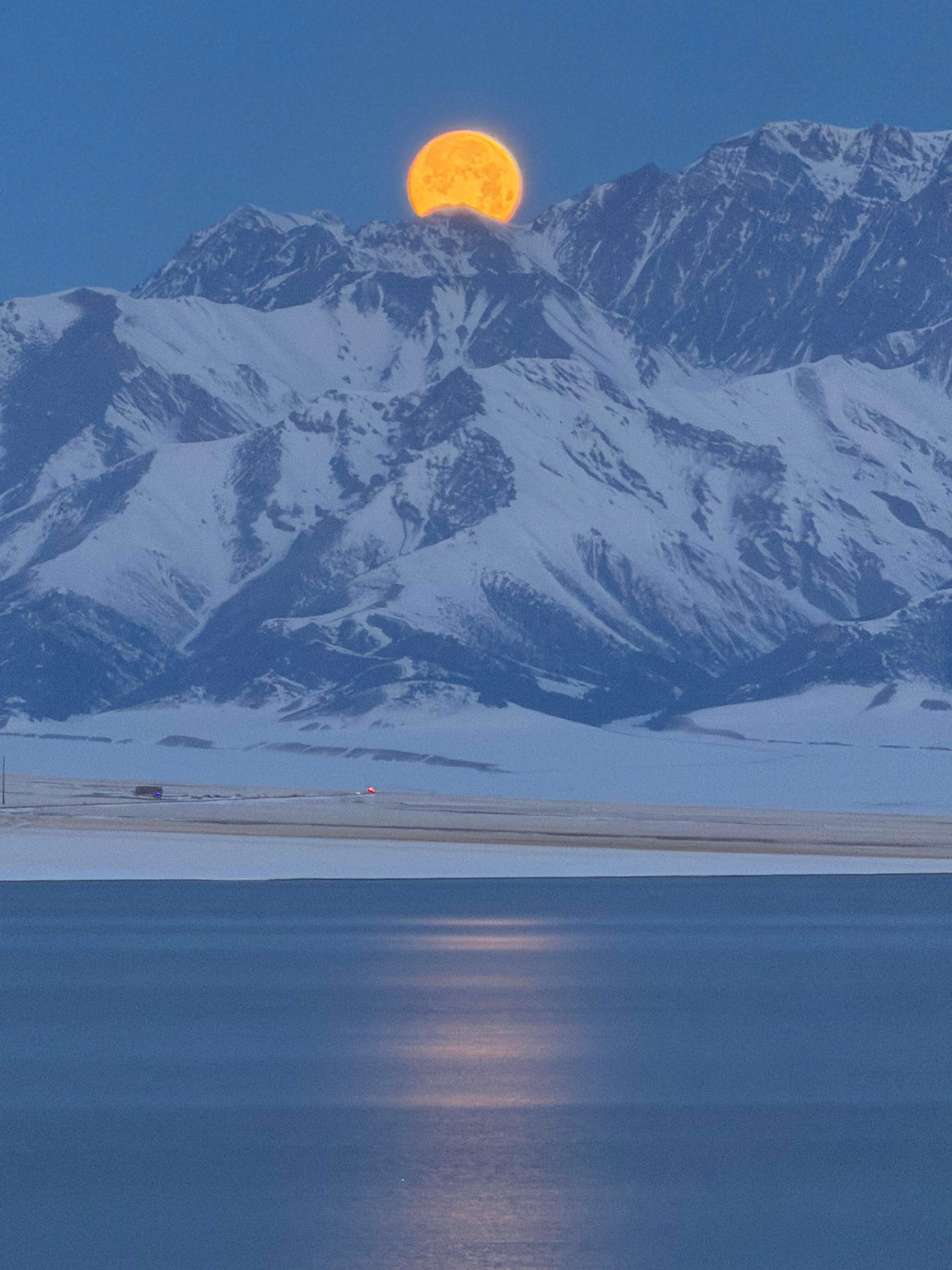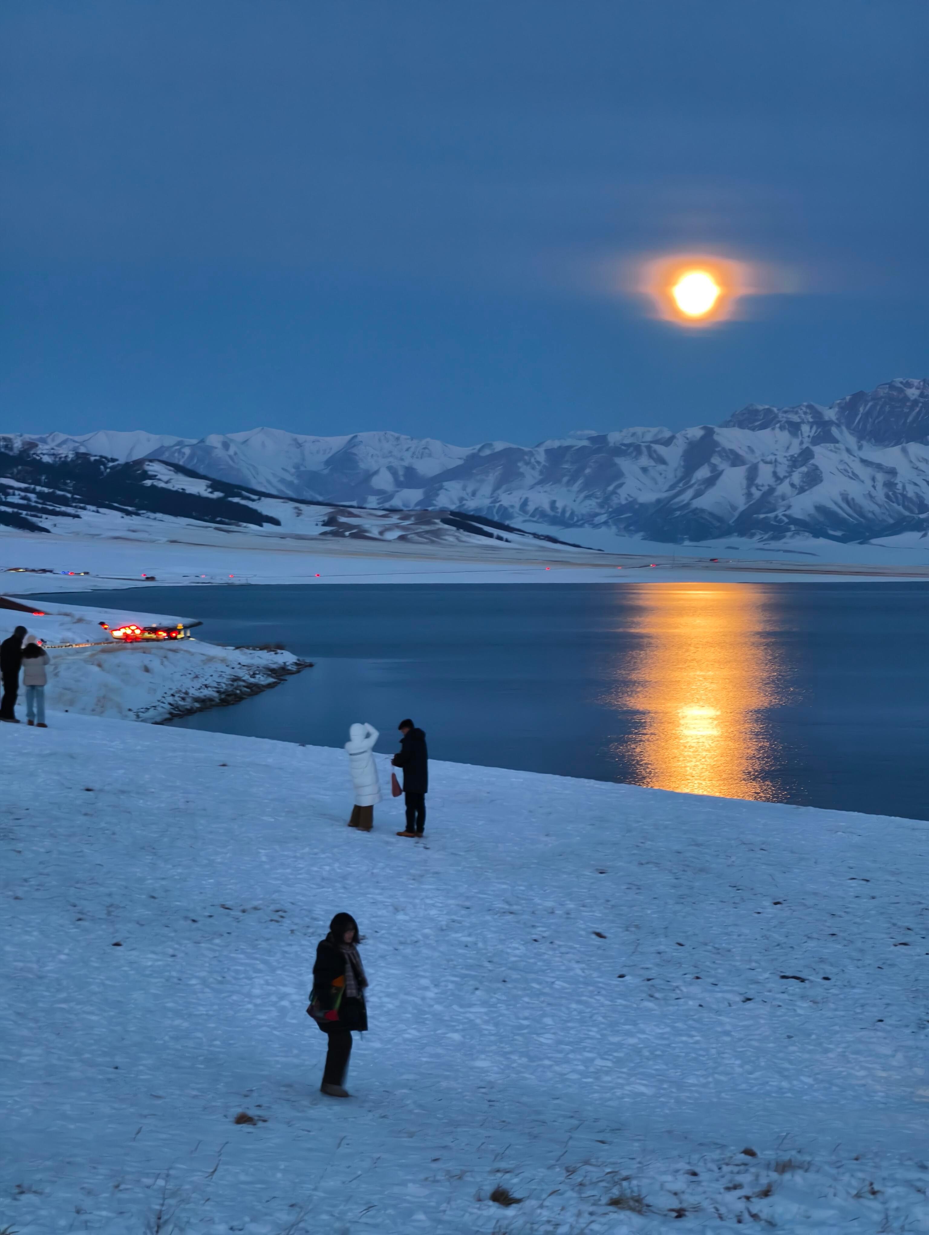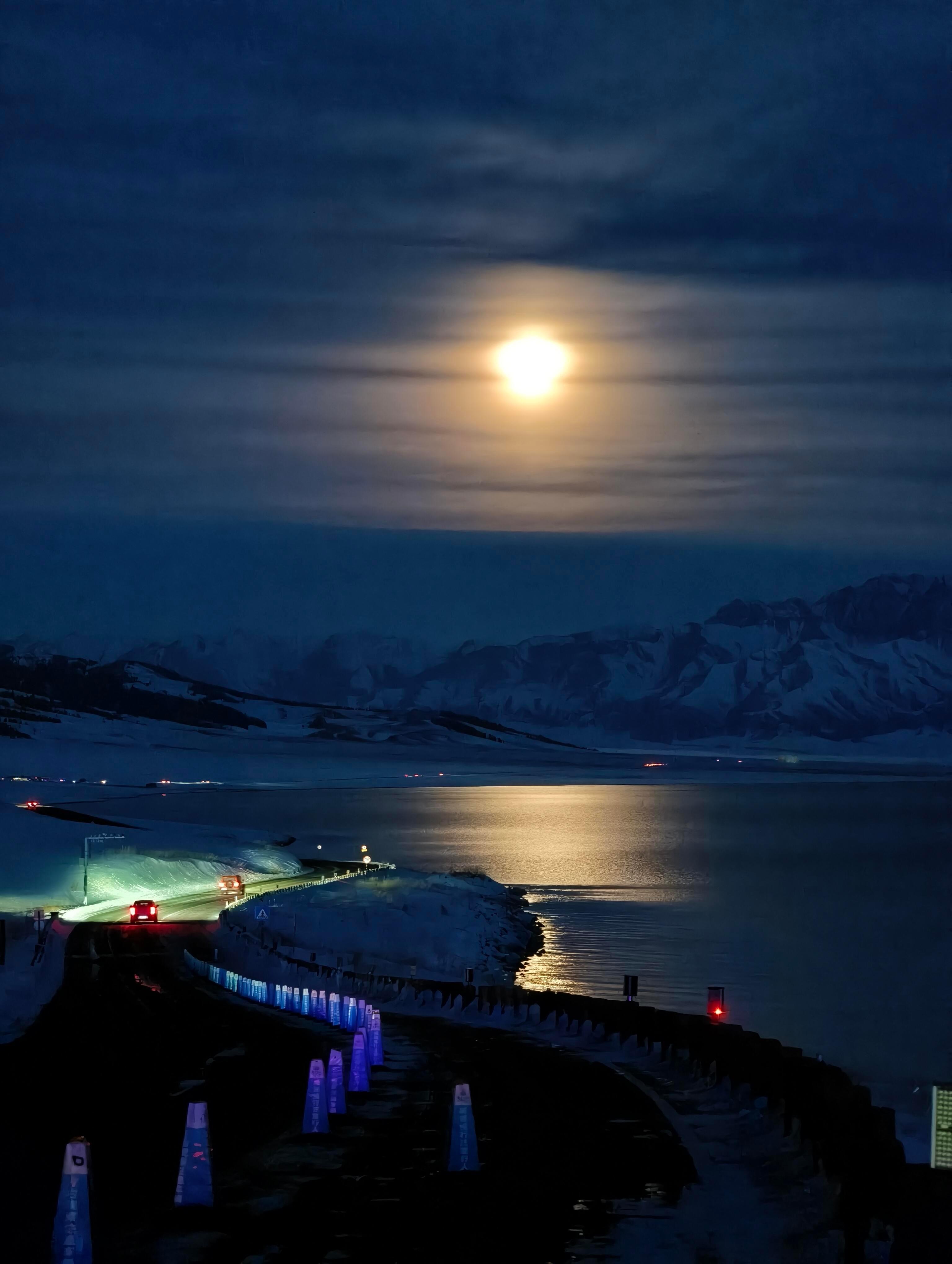 赛里木湖满月1.3赛里木湖日出实况,满月绝了❗