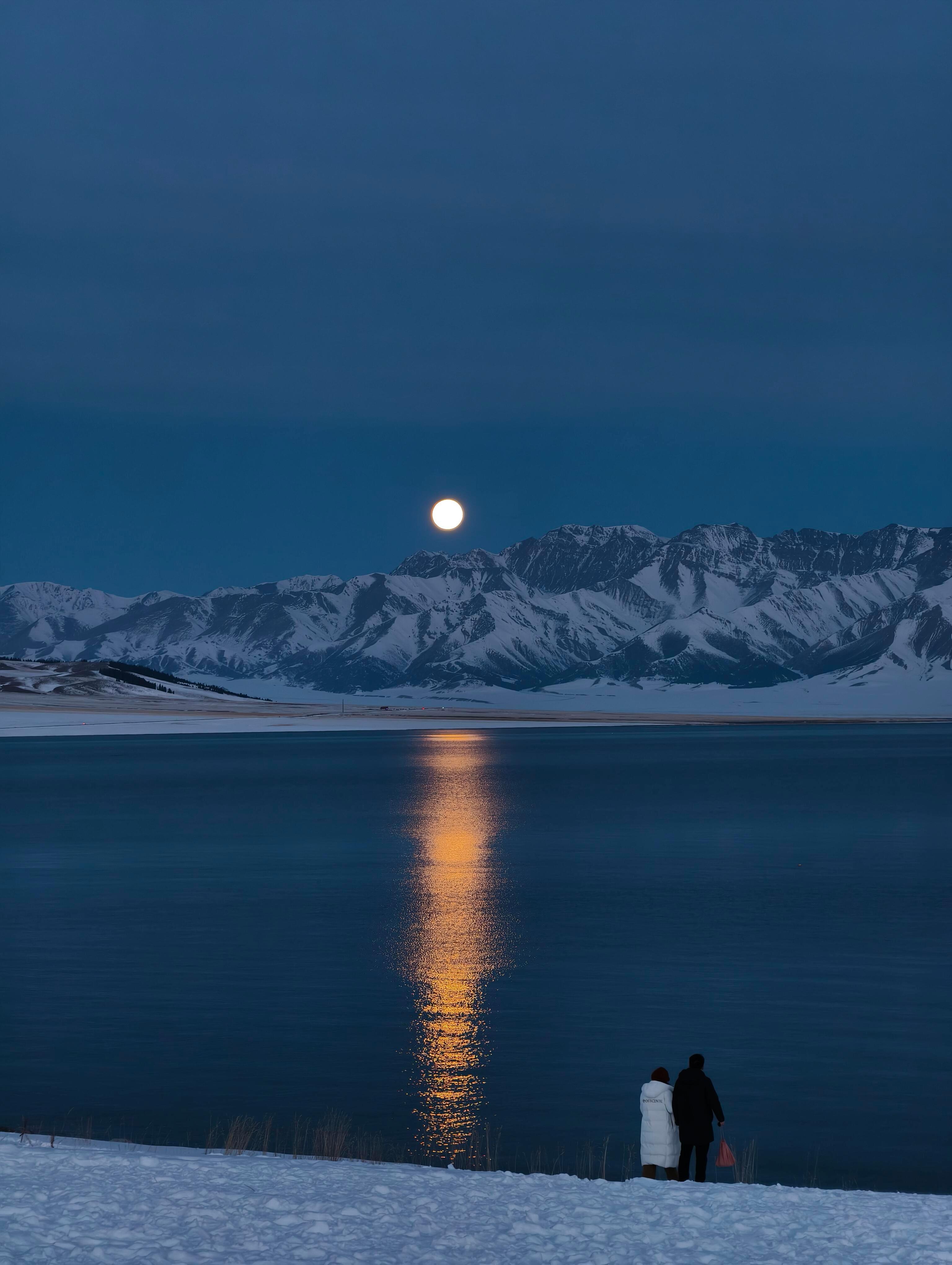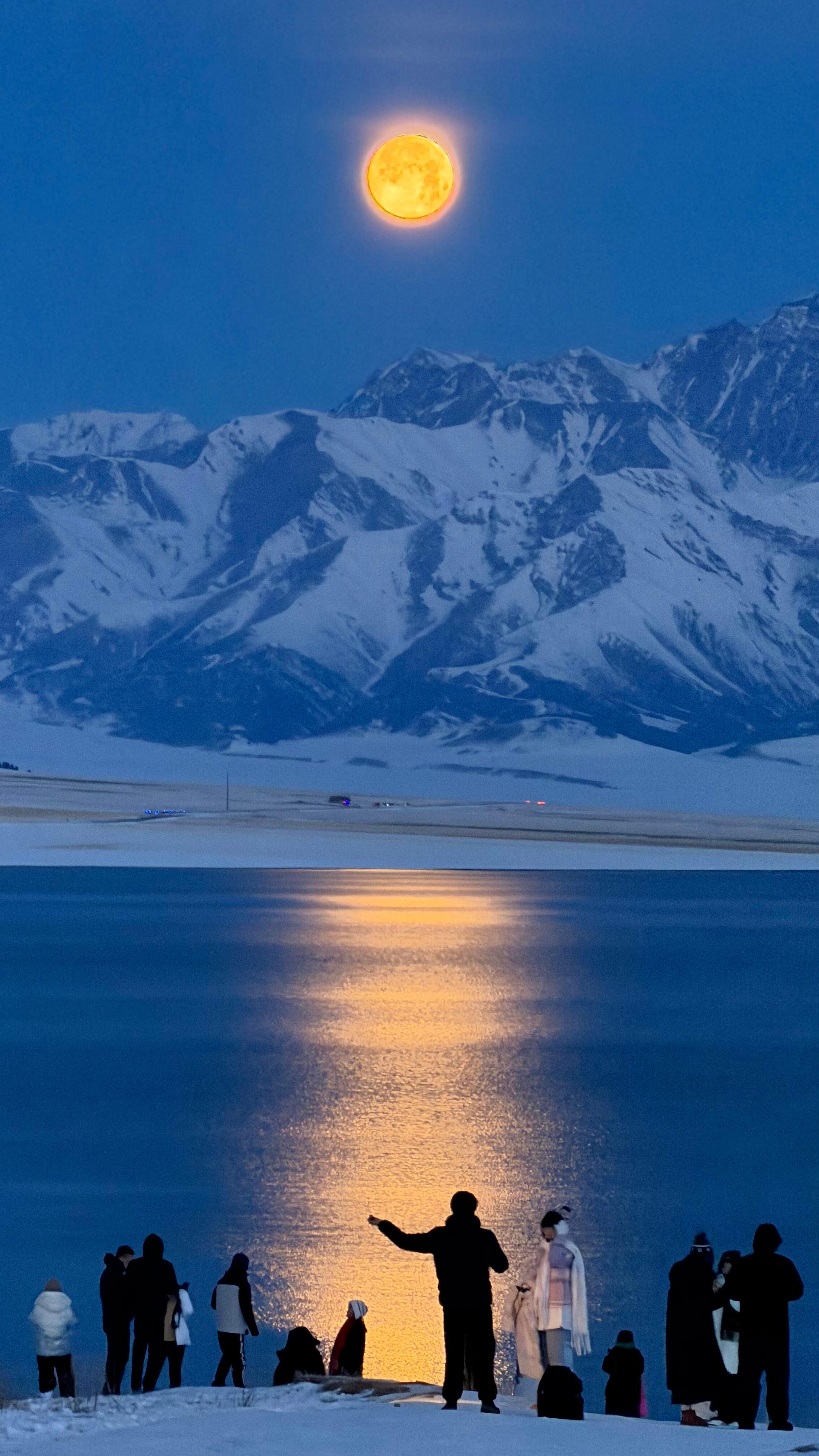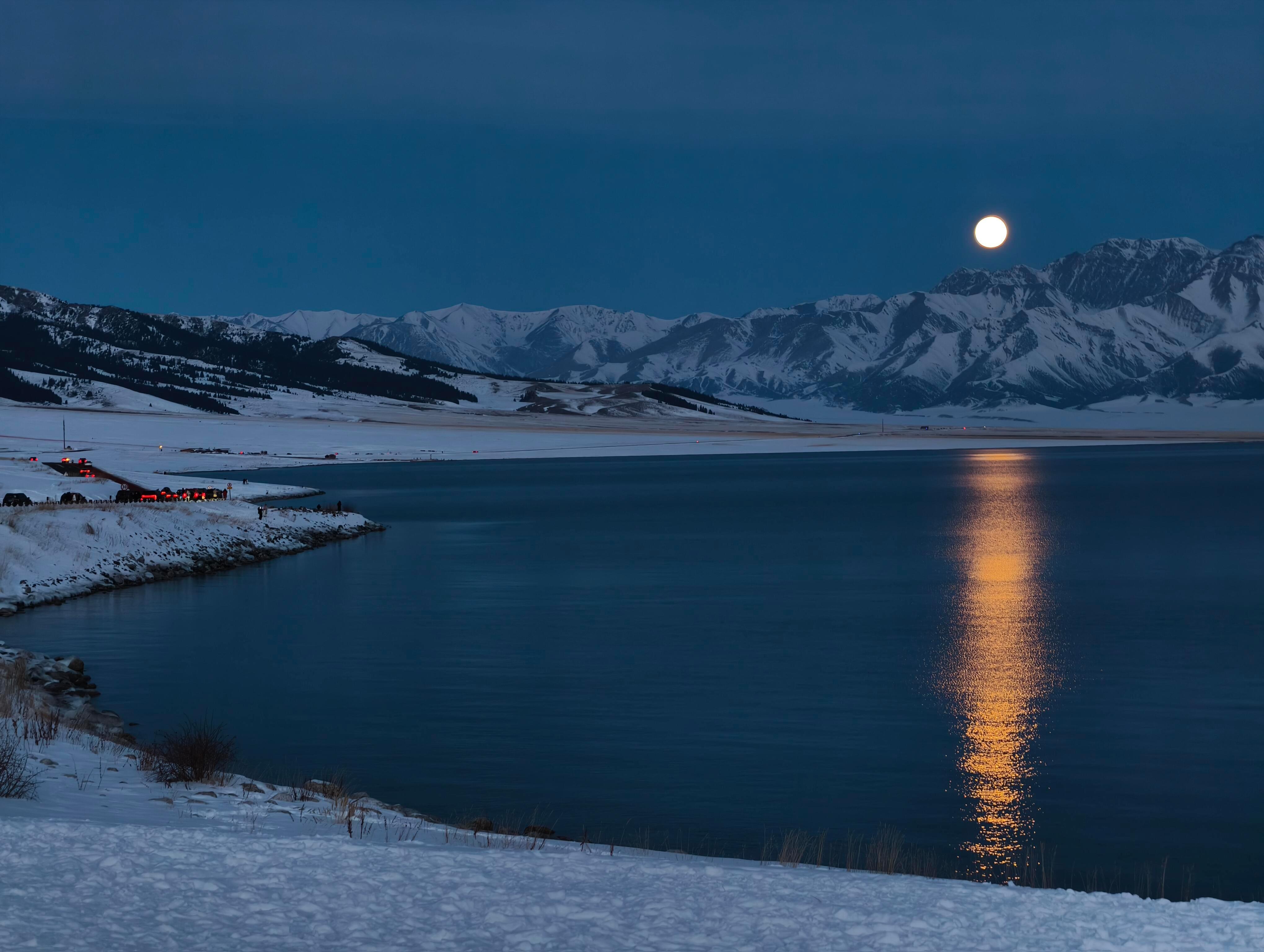 赛里木湖满月1.3赛里木湖日出实况,满月绝了❗