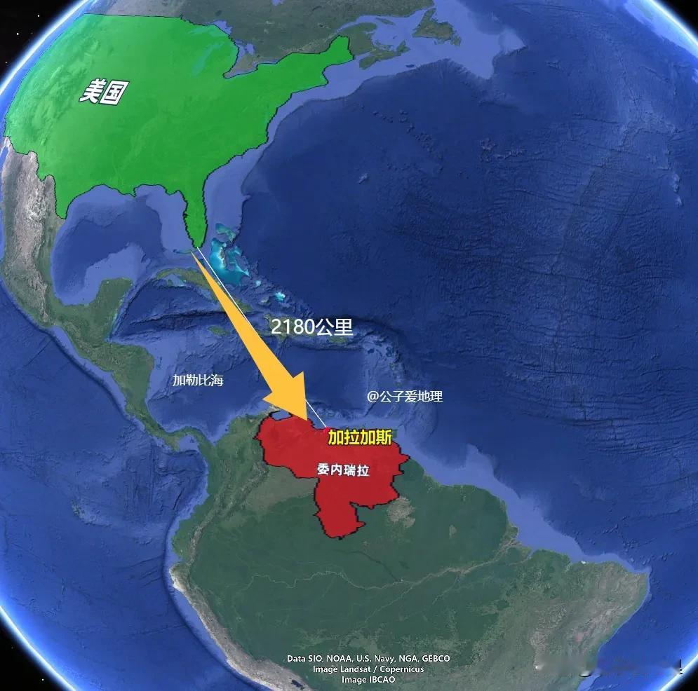 美国本土距离委内瑞拉首都加拉加斯2180公里