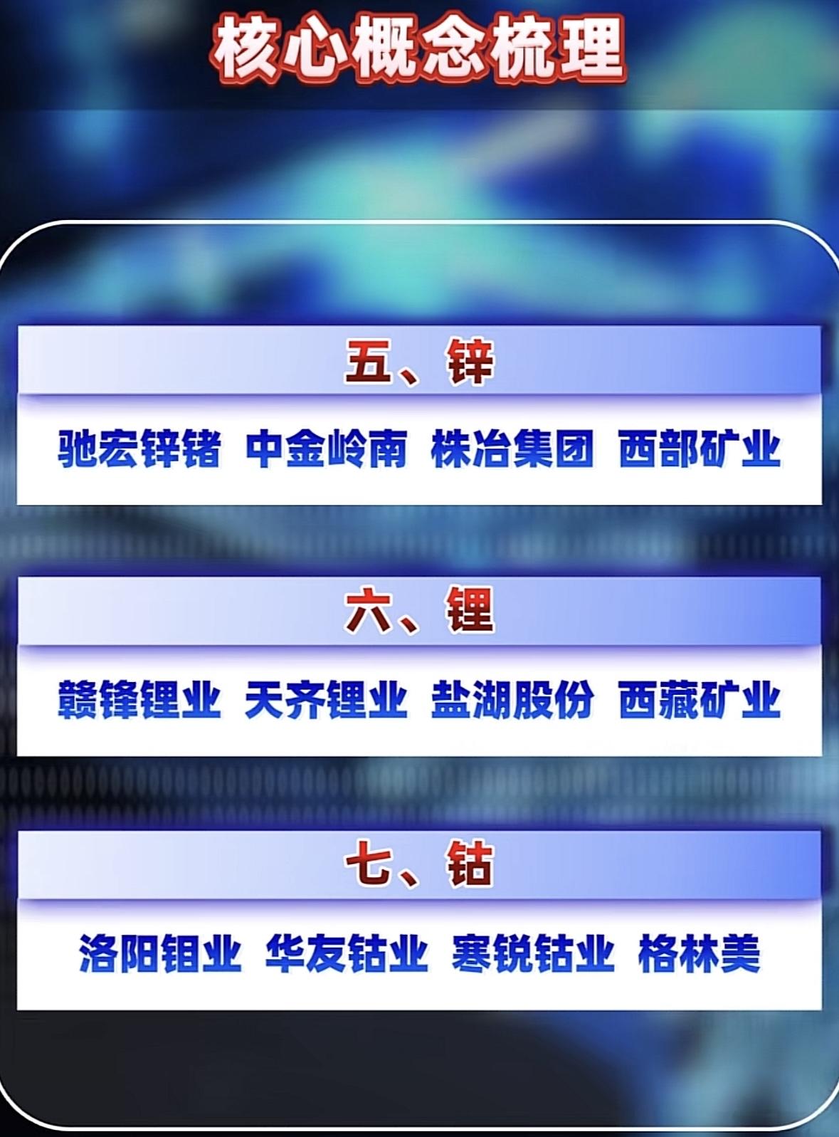 有色概念梳理:八锡、九钨、十稀土,一图看懂! "贵金属投资指南:黄金看紫金、山东黄金;白银选兴业银锡;铜铝关注江西铜业、中国铝业。核心标的速藏!"