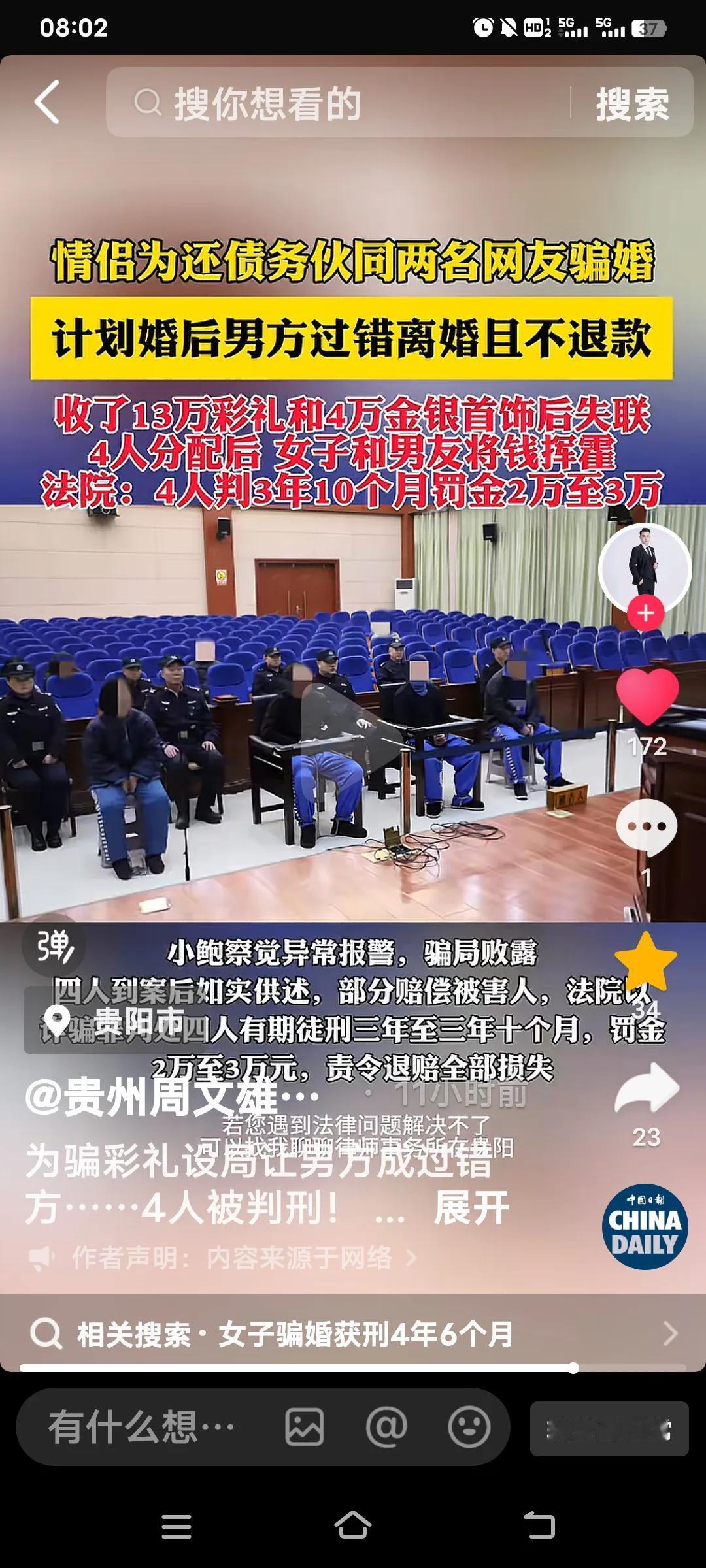 如今的骗婚手段实在令人防不胜防。情侣小熊和小李为了偿还债务,与网友小周、小宋勾结在一起,精心策划了一场骗婚骗局。网友借口小熊征信有问题,无法办理贷款,提议让她与他人结婚收取彩礼,婚后再想法子让男方犯错,进而离婚,还不用退还彩礼。 可怜的小鲍在相亲后很快就和小熊领了结婚证,却对背后的阴谋一无所知。小熊一方拿到13666多元彩礼以及价值47970元的首饰,部分彩礼进了所谓“介绍所”的腰包。剩下的彩礼被小熊和她男朋友拿去偿还债务,婚后小熊玩起了失踪,还把首饰变卖了。 小鲍察觉到异样后报了警,骗局随之败露。四人对罪行供认不讳,便有了开头那一幕。最终,法院判处四人有期徒刑三年至三年十个月,罚款两万八千元,并责令他们退赔男方全部损失。这真是“赔了夫人又折兵”,他们受到这样的惩罚也是罪有应得! 倘若遇到这种骗婚还拒绝还钱的情况,被骗方要在法律规定的时效内,依据《民法典》相关条款向法院申请判定婚姻无效,并要求返还财产。 否则,一旦超过期限,相关权利就会消失。遇到此类事情,最好尽快寻求专业律师的帮助。