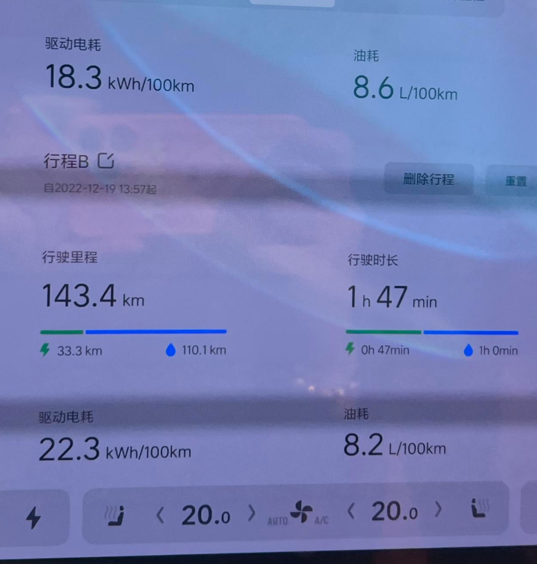 理想L9极限工况真实续航能耗测试 1、纯电市区续航能耗测试:测试环境温度在15度左右,空调ac,风量最小,温度20。佛系脚法开车。一人。测试工况,纯市区走走停停,每天市区行驶里程长短不一,从13号充满电,到19号凌晨把电跑到电量还剩余6%,先说结果,跑了【148公里,总耗时6小时41分】,得出的平均速度是每小时22公里,这个平均车速完全属于比较拥堵的交通环境了。市区续航能耗总结:其实这种工况下是非常不利于跑出一个高续航的,因为每次冷车启动,电量的消耗都非常大,头1公里大概要消耗2%电量,随后恢复正常掉电,而且总时长很长,车辆的各种设备对电量消耗也比较大,这种工况算是纯市区续航测试的一种挑战,这就是为什么车机显示驱动电耗低,但是续航跑不高的原因。 顺带感受了下6%电量增程器启动的体验,大油门声音明显,但是可以接受,震动不算特别明显,动力明显下降,可以满足正常驾驶、超车,类似于2.5混动汉兰达动力水平。 2、高速续航能耗测试:南宁市区往返钦州三墩码头,总里程352公里,总耗时5小时8分钟,综合电耗:22.8,综合油耗:8升高速测试包括了纯油、纯电两种工况,车流量极小,全程顶着120限速开,99%时间打开辅助,驾驶测试环境温度15度左右,空调ac,风量最小、温度20度、一人。高速120限速纯油能耗:满电出发,打开燃油优先,电量跌到70%增程器启动,此时正好以120kmh的速度巡航,高速纯油跑了一小时整,行驶110公里。平均速度110km/h。车机油耗8.2升。 高速能耗总结:今天的高速车流量很小,我几乎都是顶着120跑,并且开启辅助驾驶,尽可能降低人为驾驶习惯因素,纯油120km小的油耗是8.28.5升左右。纯电120km小的电耗:25.6。这是基于目前的环境温度跑出来的,本次能耗测试可以得出以下结论,120kmh的速度跑,油耗并不会太高,可以说是优秀标准,因为L9的自重达到了2.52吨。电耗我个人觉得表现也不错,因为我的3p在高速顶着120km/h的速度跑能耗是18.5,3p车重只有L9的72%,但是风阻比L9小,L9的能耗比3p高了37%。按照这个比例,L9的高速能耗是可以接受的。