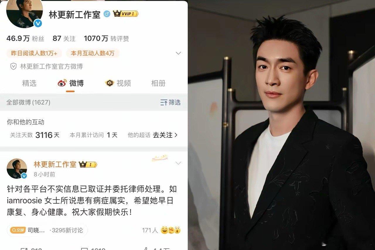 还得是我“北京哥” 林更新把内娱玩得透透的这多工作室的回应就属他这个别具一格,依旧稳定发挥今日司晓迪指控林更新情感欺骗把她当作“玩物”害她得了抑郁症。林更新工作室已做出回应原文是:针对平台不实信息已取证并委托律师处理。如司晓迪(iamroosie)女士所说患有病症属实,希望她早日康复、身心健康,祝大家假期快乐!这么男明星的澄清只有这个让我笑出了声,我怀疑这可能是林更新自己发[笑哭]。怼人这一块还得是我“北京哥”,不过对比他以往作风,这已经很文明了!