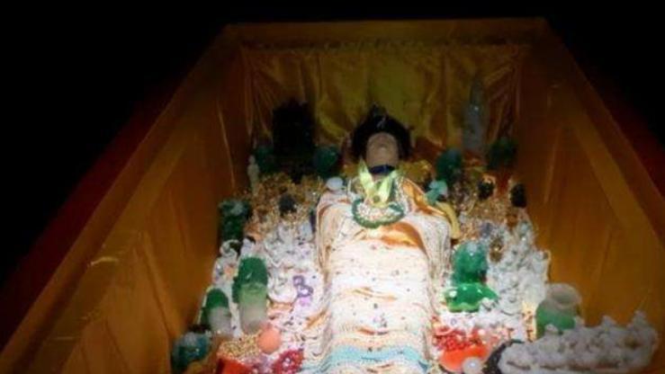 1972年,内蒙古赤峰发现出土了一具保存完好的女尸,她头戴凤冠,身穿金丝龙袍,旁边的陪葬品更是多的数不胜数,就连脸上的皮肤都还具有弹性。 考古队赶来后,一铲子下去就知道不简单这夯土层的厚度,分明是亲王级别的规格。 可谁能想到,打开第一层墓室竟是空的,散落的瓷片像是故意摆的迷魂阵。 要不是队长敲了敲北墙,这穿龙袍的主儿可能就永远埋在地下了。 棺椁打开时所有人都屏住了呼吸。 金丝楠木的棺盖上,龙凤呈祥的雕刻还闪着光。 最让人吃惊的是里头的女尸,1.58米的个头躺在那儿,头发乌黑地垂到腰上,皮肤摸起来居然还有弹性。 后来数陪葬品才发现,光金器就有37件,那顶九凤朝阳金冠得有两斤多重。 更离谱的是那件龙袍,明黄色的缎面上绣着八团金线龙纹,这可不是普通公主能穿的。 查了墓志铭才搞明白,这是康熙的三闺女荣宪公主。 说起来也挺有意思,按规矩妃嫔生的女儿只能叫和硕公主,可她愣是被晋成了固伦公主。 后来翻《康熙起居注》才发现,当年康熙得疟疾,这闺女从蒙古赶回来,四十多天衣不解带地伺候。 皇帝一感动,不光破格封了固伦公主,还赏了这身半龙纹的礼服。 这种待遇,连皇后生的公主都没享受过。 她嫁给蒙古郡王乌尔衮那事儿,在当时也算段佳话。 康熙不光允许她三年回一次娘家,还赏赐了十二次,黄金绸缎一车车地往草原拉。 对比那些嫁出去就见不着面的公主,荣宪这待遇简直是独一份。 不过看墓室布局就知道,她老公和儿子只能委屈待在耳室里,连个正经棺椁都没有,这夫以妻贵的场面在清代可不多见。 后来专家用CT扫描,总算解开了尸体不腐的秘密。 棺椁用铜榫卯加松香密封,里头氧气含量不到1%。 尸身裹的十二层丝绸都拿矾水泡过,体内还有微量水银。 这种满汉蒙三族结合的防腐技术,比马王堆的湿尸和慈禧的干尸都特别。 现在这凤冠龙袍还在内蒙古博物院摆着,每次看到那龙纹的针脚,都能想起当年那个在草原上既能送粮草又能尽孝心的公主。 展厅里那盏射灯打在凤冠的珍珠上,反光里好像能看见当年荣宪公主探亲时的车队。 她戴着这顶凤冠跪在康熙面前请安的样子,和现在玻璃柜里静静躺着的文物重叠在一起。 考古队当年没料到,这个意外发现的盗洞,竟让我们看清了那个年代里,一个公主如何用孝心和智慧,在政治联姻里活出了不一样的人生。