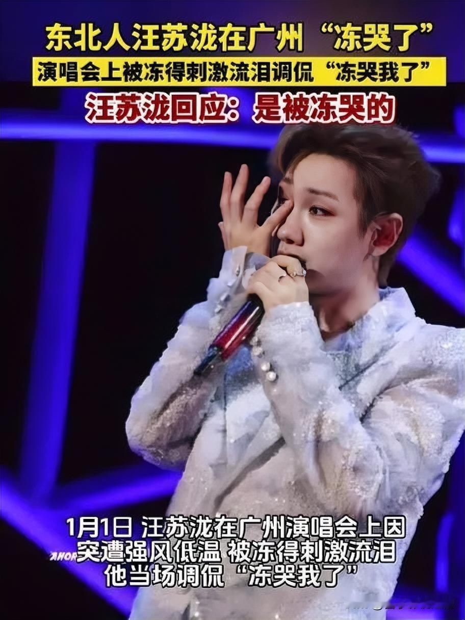 东北人汪苏泷在广州被冻哭了 2026年元旦期间,东北歌手汪苏泷在广州大学城体育中心连开三场演唱会。1月1日晚,广州突遭强风低温,气温骤降至4.8℃,汪苏泷在舞台上被冻得当场流泪,他调侃“冻哭我了”。次日他又强调:“我昨天确实哭了,但真是被冻哭的。”此话题引发热议,网友纷纷表示理解,毕竟广州的湿冷是“魔法攻击”,连东北硬汉也扛不住。