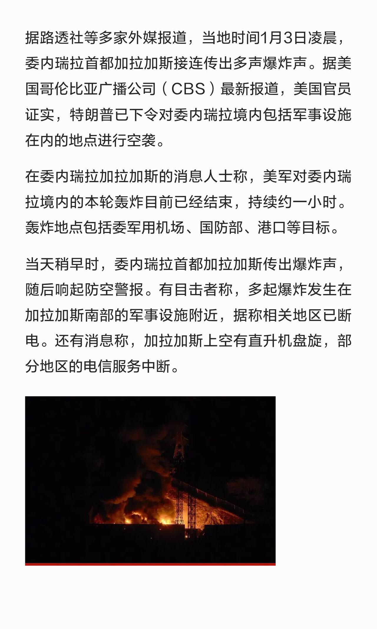 美国佬这回动真格了,直接对委内瑞拉动武了。昨天(1月3日)委内瑞拉政府发公告,骂美国搞“极其严重的军事侵略”,炸了首都加拉加斯和好几个州的民用和军事目标。委方气得不行,说美国这是明着违反《联合国宪章》,不把别国主权当回事,简直无法无天。 马杜罗这边反应也快,马上签法令,全国进入紧急状态,还喊话老百姓“拿起武器干到底”,要打退美国侵略。同时下令全国各地成立“综合防御指挥部”,看起来是要硬扛到底了。公告里还放话,说我们保留自卫权,要去联合国安理会告状讨说法。 这事儿说白了就是美国军事打击委内瑞拉,委方急眼了,一边全国总动员一边准备去国际社会闹大。两边这回算是彻底杠上了。