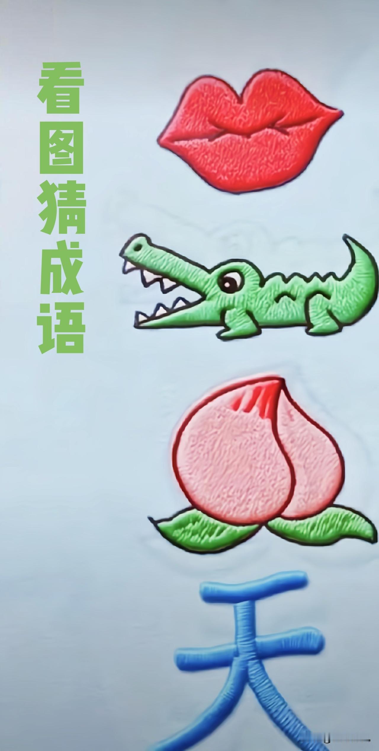 2026年开年看图猜成语,真把我难住了,我抠破脑袋想了一整天也没想出来。听说头条猜谜高手如云,有没有哪位大神敢来挑战? 画面里依次是红唇、鳄鱼、桃子、“天”字,这组合第一眼瞅着完全摸不着头脑,唇+鳄+桃+天,简直是“牛唇不对马嘴”。谜底不会是“唇鳄桃天”吧?不对不对,翻遍成语词典也没这词啊。再掰扯掰扯谐音,“蠢蠢欲动”或“逃之夭夭”是不是谜底?这脑洞也太离谱了,第一眼看到红唇又想猜“口若悬河”,看到鳄鱼又脑补“鳄鱼眼泪”,都不对。 这个谜语太难了,实在没辙,我准备出狠招了,直接来个现场猜谜招亲。哪位高人在30秒内猜出正确答案。我将芳龄22,貌美如花的妹妹直接许配给你。走过路过千万别错过,这波血赚的机会,就看谁是真正的猜谜大神了。[呲牙][呲牙][呲牙]