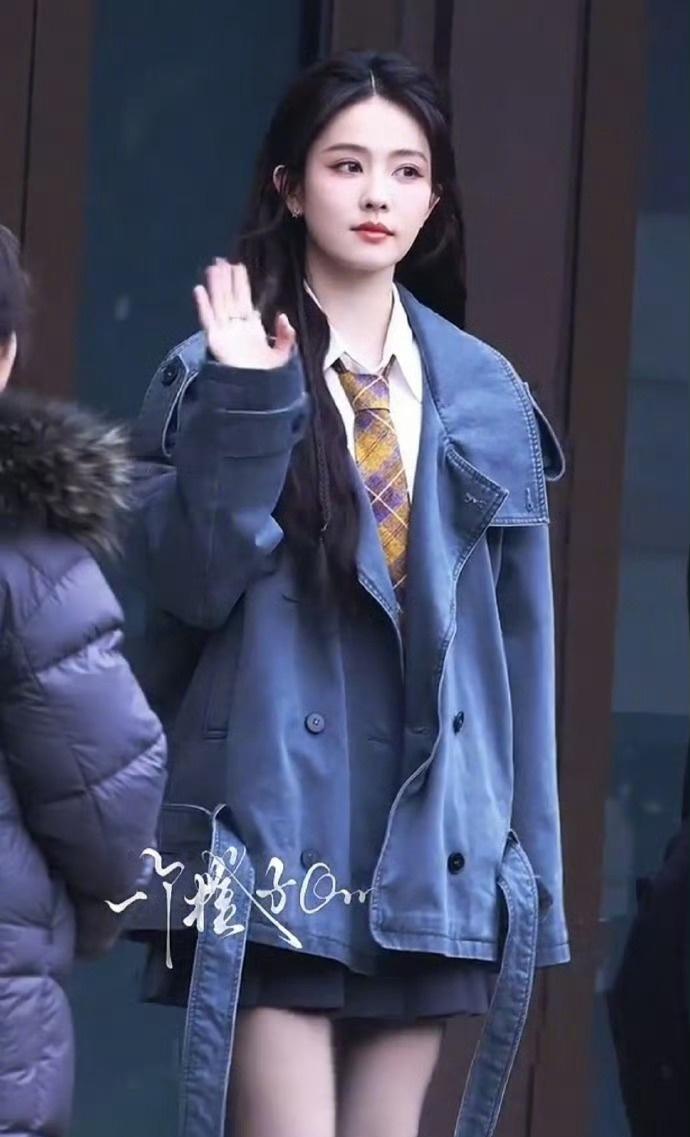 白鹿的穿搭风格偏学院风与休闲风结合,内搭是一件简约的白色衬衫,搭配带有黄紫格纹的领带,增添了学院感;外搭一件蓝色的工装风外套,外套有双排扣设计,还有可调节的腰带,整体休闲又不失设计感,长度到臀部附近,宽松的版型显得随性自在。搭配一条黑色的短裙,露出腿部线条,在学院风的基础上又带点俏皮可爱的感觉,也让整体穿搭不会过于沉闷。白鹿超话