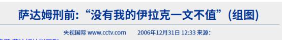临行前的狂言!2006年12月30日,萨达姆走上绞架,临行前高喊:“没有我,伊拉克一文不值!”   相信在伊拉克境内,很多人都痛恨着前总统萨达姆。萨达姆在担任伊拉克总统期间,大量的引进外国技术。看似是在促进国家的发展,但实则不然。   在他的带领下,伊拉克的石油产业成了国有化。而后来在美国和苏联支援的背景下,又同伊朗发生了战争,促使伊拉克出现了民穷财尽的情况。   所以对于伊朗人来说,萨达姆是一个罪人。而他最终的结局是被行刑,2003年伊拉克战争中,逃亡8个月的他被美军抓获。   在经伊拉克法庭宣判之后,2006年11月5日的时候被判处绞刑。2006年12月30日的时候,他冷静的走上了绞架,没有丝毫的恐惧,也没有丝毫的反抗。   但是他在临行前却高喊,没有他的伊拉克一文不值!在他被行刑之后的多年时间里,这句话一直都是国际讨论的焦点。   那么是否真的如他所说,没有他的伊拉克一文不值呢?其实并不是,在他去世之后的多年时间里,伊拉克虽然还存在着动荡的情况,但是人民却实现了自由。   当然不可否认的是,在他的带领下,伊拉克也曾有过兴盛的时期。伊拉克的石油在被国有化之后确实带来了巨额的收入,让伊拉克的人民生活水平得到了明显的提升。据了解,那个时候伊拉克人民的生活水平和人均GDP,接近部分欧洲城市。   但这并不意味着他们没有罪行,在他的带领下,伊拉克出现了严重的分裂,安全崩溃等各种情况。所以评判一个历史人物,看的角度不同,对他的了解也就不同。   对此,您怎么看?欢迎评论区留言,您的看法,我们一起讨论一下。 (信息来源:萨达姆刑前:“没有我的伊拉克一文不值”(组图)-央视国际)