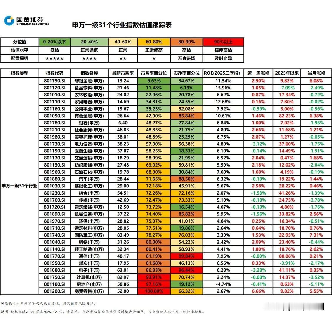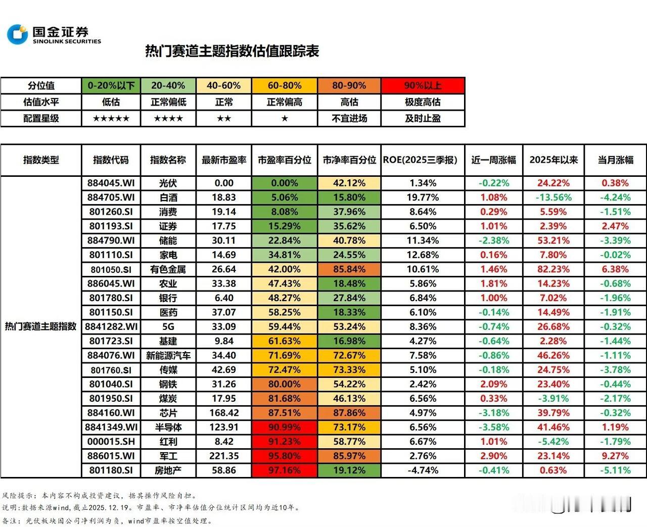 这是什么股市?本周大盘指数天天红,而我却只红了一天,感觉天天都是亏钱赚指数。 简单看了一下证券经理给我发的估值表,因为我没买宽基指数和行业板块ETF,所以平时不太关注这些。目前上证指数、中证A50、科创50、中证A100指数已经到了极度高估位置;深证成指、上证50等处于高估位置;而创业板和恒生科技处于正常偏低位置。还有很多细分板块估值,这里就不一一道来,觉得有用的可以收慢慢看。 今年还剩最后三个交易日了,从目前的股市行情和持仓股弱弱的表现看,没啥期望,只希望能守住今年的利润,今年没做好,寄希望于明年再战吧!