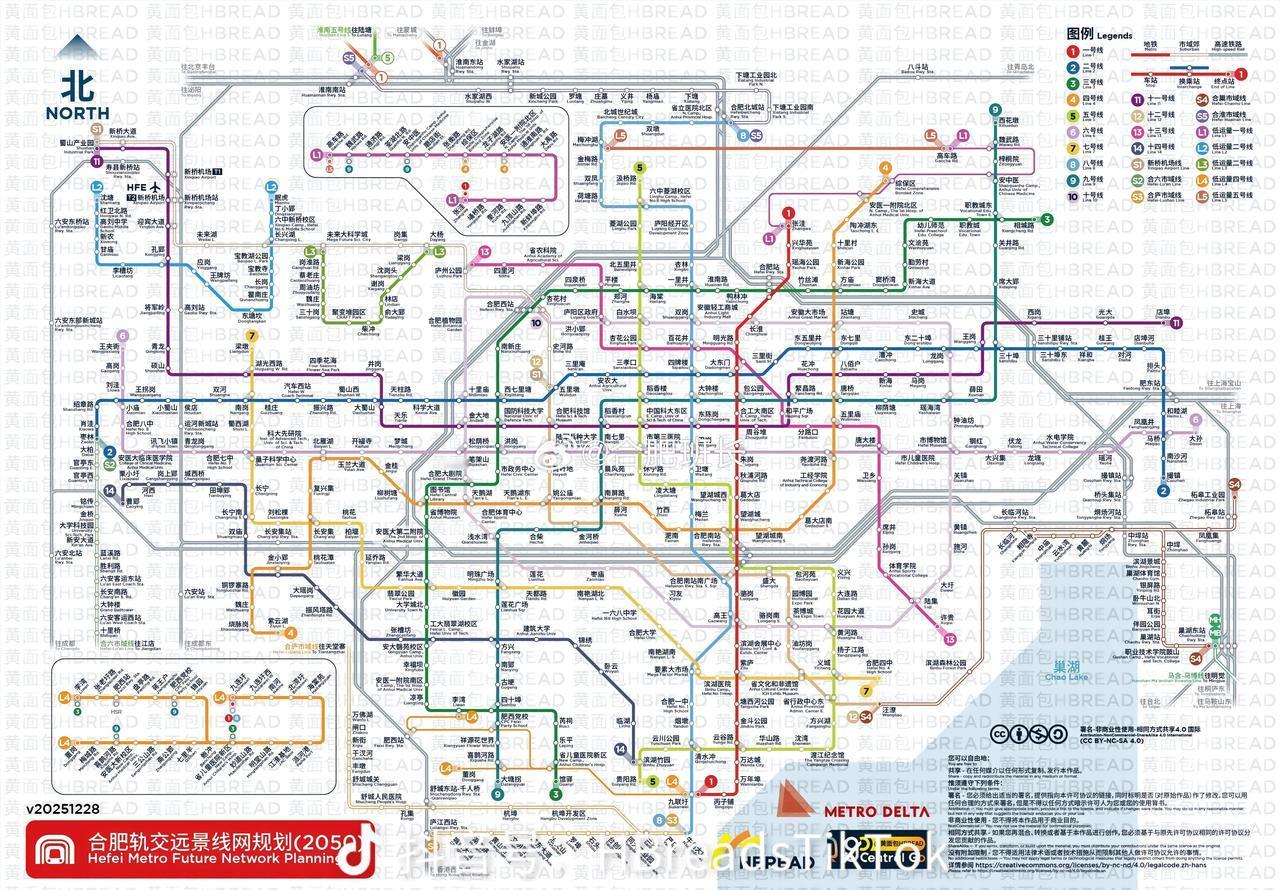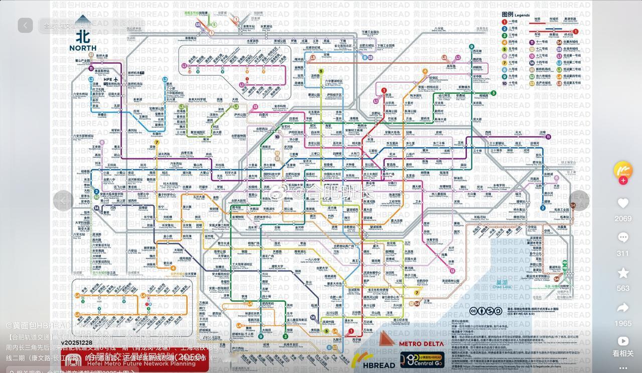 DY博主黄面包发的合肥轨道交通远景线网规划图,这个估计得经历几代人才能完成吧,也许早已经实现了真正的低空日常通勤了! 从这个图上看市区共有14条地铁线路,还有5条市域线,S2到六安,S3到庐江,S4到巢湖,S5到淮南,还有5条低运量专线。