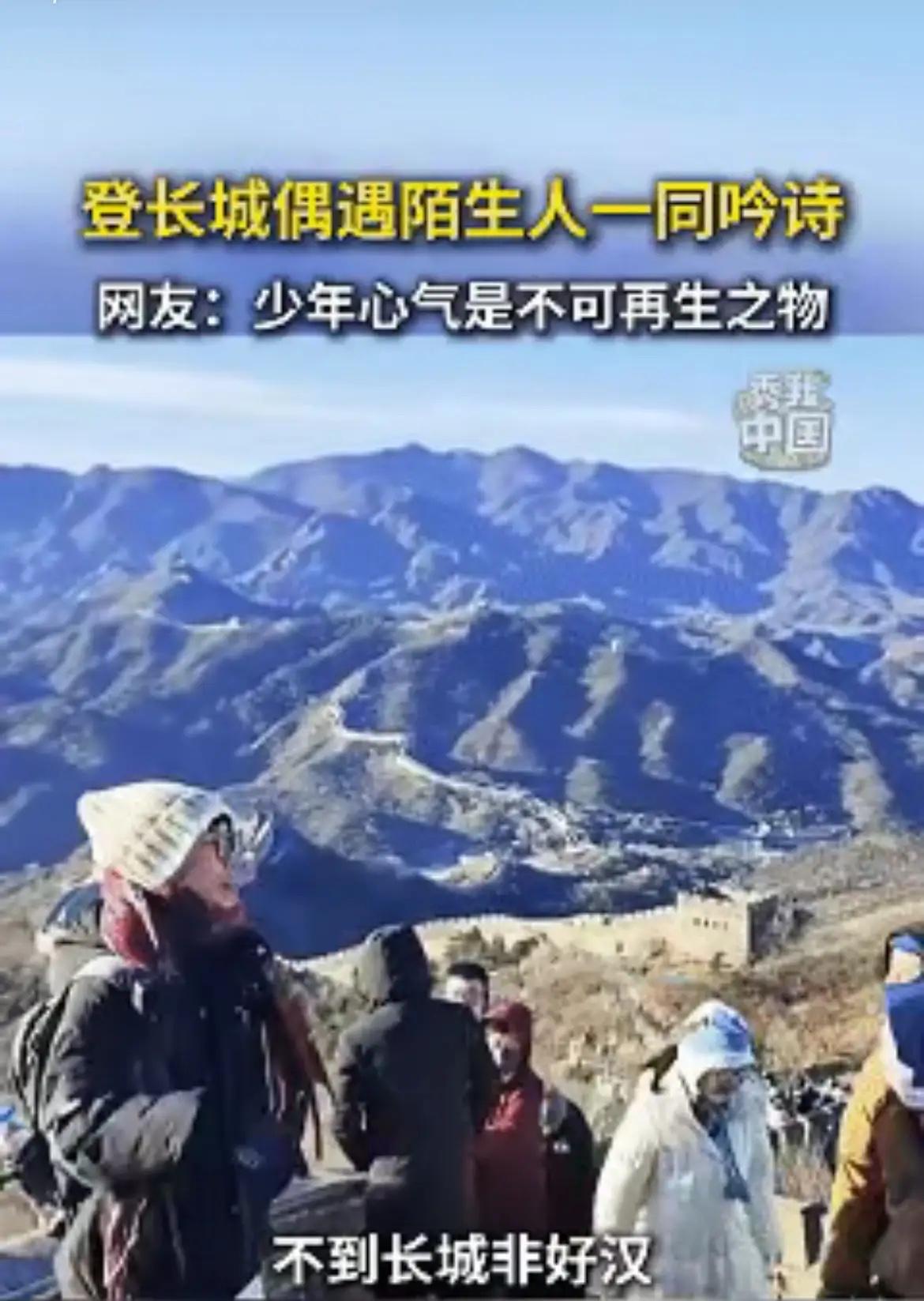 长城上的即兴合吟,藏着中国人刻在骨子里的豪情 近日北京,浙江一位小伙独自爬长城,登顶后看到眼前的巍峨景象不由得豪情万丈,对着镜头喊出了《清平乐六盘山》,可没想到的是,刚念到不到长城非好汉,身后突然传来一阵雄浑的男声一同吟诗,两人顿时一眼,越念越激动,将整首诗都背诵下来。 没人提前约定,也没人刻意准备,就那么一句接一句,声音从最初的试探,变成后来的齐声高诵,风从长城的垛口吹过,裹着两人的声音,散在群山之间。 小伙叫林越,95后,这次独自来北京,就是想圆儿时“登长城当好汉”的梦。爬到八达岭北八楼时,汗水浸湿了后背,可抬头望见连绵起伏的城墙顺着山脊蜿蜒,云雾在远山间缭绕,胸腔里的热血一下子涌了上来。他举起手机想记录这一刻,张嘴就喊出了“不到长城非好汉”,没等往下接,身后就传来一声沉稳的应和:“屈指行程二万!” 林越回头,看见一位五十多岁的大叔站在不远处,手里攥着个保温杯,鬓角带着汗珠,眼神却亮得很。两人对视一笑,像是认识了很久的朋友,顺着诗句一路往下诵。“六盘山上高峰,红旗漫卷西风”,大叔的声音浑厚有力,林越的声音清亮激昂,一老一少的嗓音交织在一起,竟有种穿越时空的默契。周围的游客都停下了脚步,有人跟着轻轻哼唱,有人举起手机录像,原本喧闹的烽火台,此刻只剩下整齐的吟诵声和风吹过城砖的呜咽。 合吟结束,大叔拍了拍林越的肩膀:“年轻人,还能记得这么完整的红色诗词,难得!”林越笑着回应:“站在这长城上,就忍不住想喊出来,感觉浑身都是劲儿。”闲聊中得知,大叔姓王,是北京本地人,退休后常来长城徒步,这首《清平乐·六盘山》是他年轻时当兵时必背的诗词,每次登长城,都会不由自主地念上几遍。 这看似偶然的相遇,其实藏着必然的文化共鸣。《清平乐·六盘山》诞生于1935年,是毛泽东同志率领红军翻越六盘山时所作,那是长征途中最后一座大山,诗句里满是摆脱围追堵截、即将胜利的豪情与壮志。而长城作为中华民族的精神象征,承载着自强不息、众志成城的爱国情怀,千百年来,无数人在这里抒发胸臆、寄托理想。当红色诗词遇上千年长城,两种蕴含着奋斗与豪情的文化符号碰撞,自然能激起中国人心底最深处的共鸣。 如今这样的场景,在长城上越来越常见。2025年五一假期,八达岭长城单日接待游客突破10万人次,其中不少年轻人都是冲着长城的文化底蕴而来。他们不再满足于简单打卡拍照,而是愿意花时间了解长城的历史,感受诗词里的精神力量。中国青年报社的调查显示,93.5%的受访青年认为国潮的兴起让他们更爱中华优秀传统文化,越来越多的年轻人正在从传统文化的旁观者变成传承者。 这背后,是国家对文化遗产的重视与保护。北京出台《北京市长城保护条例》,用科技手段进行数字化保护,还举办长城文化节、推出研学线路,让古老长城焕发新活力。当长城不再只是遥远的历史遗迹,当红色诗词通过课堂、综艺、文旅活动走进日常生活,文化传承就有了鲜活的载体。林越和王大叔的即兴合吟,正是这种文化浸润的自然流露——不需要刻意排练,不需要旁人带动,只要身处那个场景,文化基因就会被唤醒。 反观有些旅游场景,不少人忙着摆姿势、拍视频,却对身边的文化符号一无所知。而长城上的这场合吟告诉我们,真正的旅行,是与文化的深度对话。那些刻在城砖上的历史,那些融入血脉的诗词,从来都不是过时的古董,而是能给人力量、引发共鸣的精神财富。 中国人的豪情,从来不是空洞的口号,而是藏在文化基因里的传承。它是红军长征路上的坚韧不拔,是长城修筑时的众志成城,也是当代年轻人对传统文化的由衷热爱。当越来越多的人能在长城上吟出红色诗词,在生活中践行文化传承,这种刻在骨子里的豪情就会代代相传,成为民族发展的不竭动力。 各位读者你们怎么看?欢迎在评论区讨论。