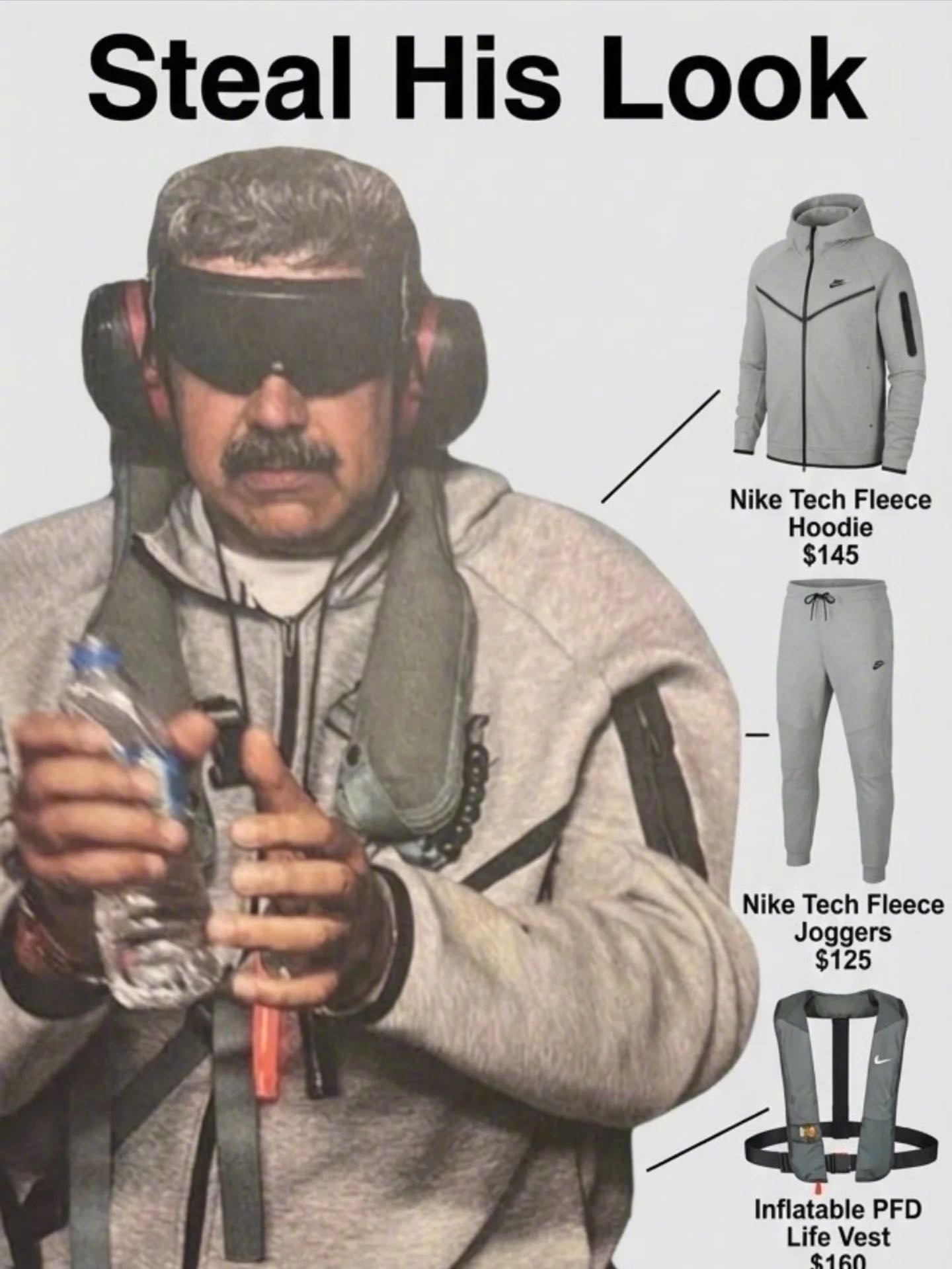 2026年刚开端,NIKE 迎来了破天的流量,预示今年会有一个好的开端!特朗普发在 Truth Social 上的这张马杜罗被捕的照片,身穿着 Nike 灰色套装,这导致Nike Tech 的谷歌搜索量爆增。而墨镜🕶️、耳机🎧、矿泉水也全部被扒了出来!马杜罗被押后首次公开发声