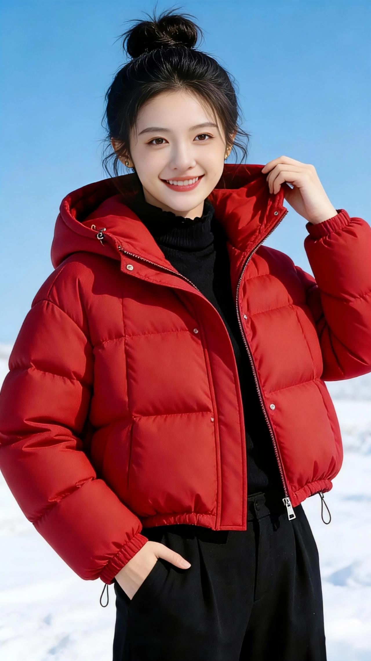 红袄映雪 雪野铺开无垠的蓝白,风掠过雪原时,卷起细碎的雪沫,却吹不散那抹炽烈的红。 她立在雪地里,红袄如一团跃动的火,在素白天地间撞出鲜活的暖意。蓬松的羽绒裹着肩头,帽沿的弧度轻垂,衬得乌发绾成的丸子头愈发灵动,几缕碎发被风拂在颊边,添了几分随性的温柔。 指尖勾着袄边时,红绸似的面料漾开浅浅褶皱,与身下的白雪相映,像极了寒天里绽出的红梅。她笑起来时,唇角弯出清甜的弧度,眸光清亮如雪地折射的光,把冬日的冷意都揉成了软融融的甜。 双臂交叠的瞬间,红袄的暖意仿佛漫过画面,雪粒落在袄面簌簌消融,而那抹红,却在蓝天白雪的映衬里,成了冬日里最滚烫的诗行。 高级感穿搭 新年穿搭 冬季穿搭 棉衣棉服