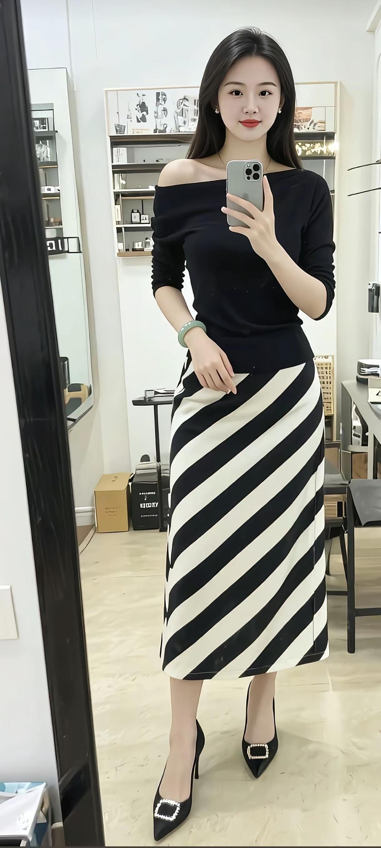 优雅黑白条纹裙,尽显时尚气质!