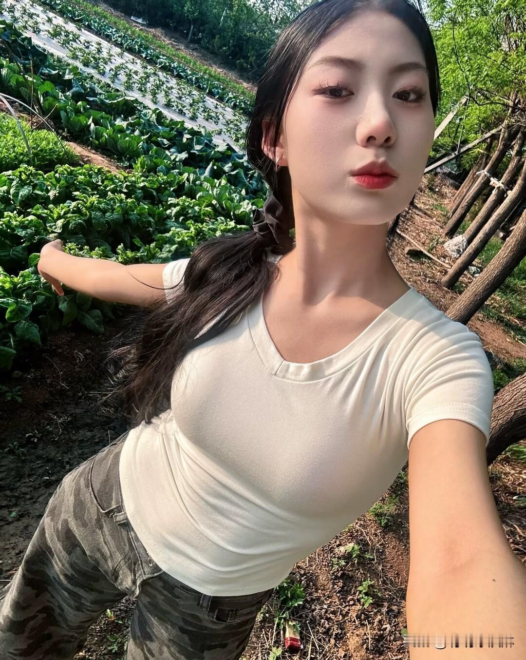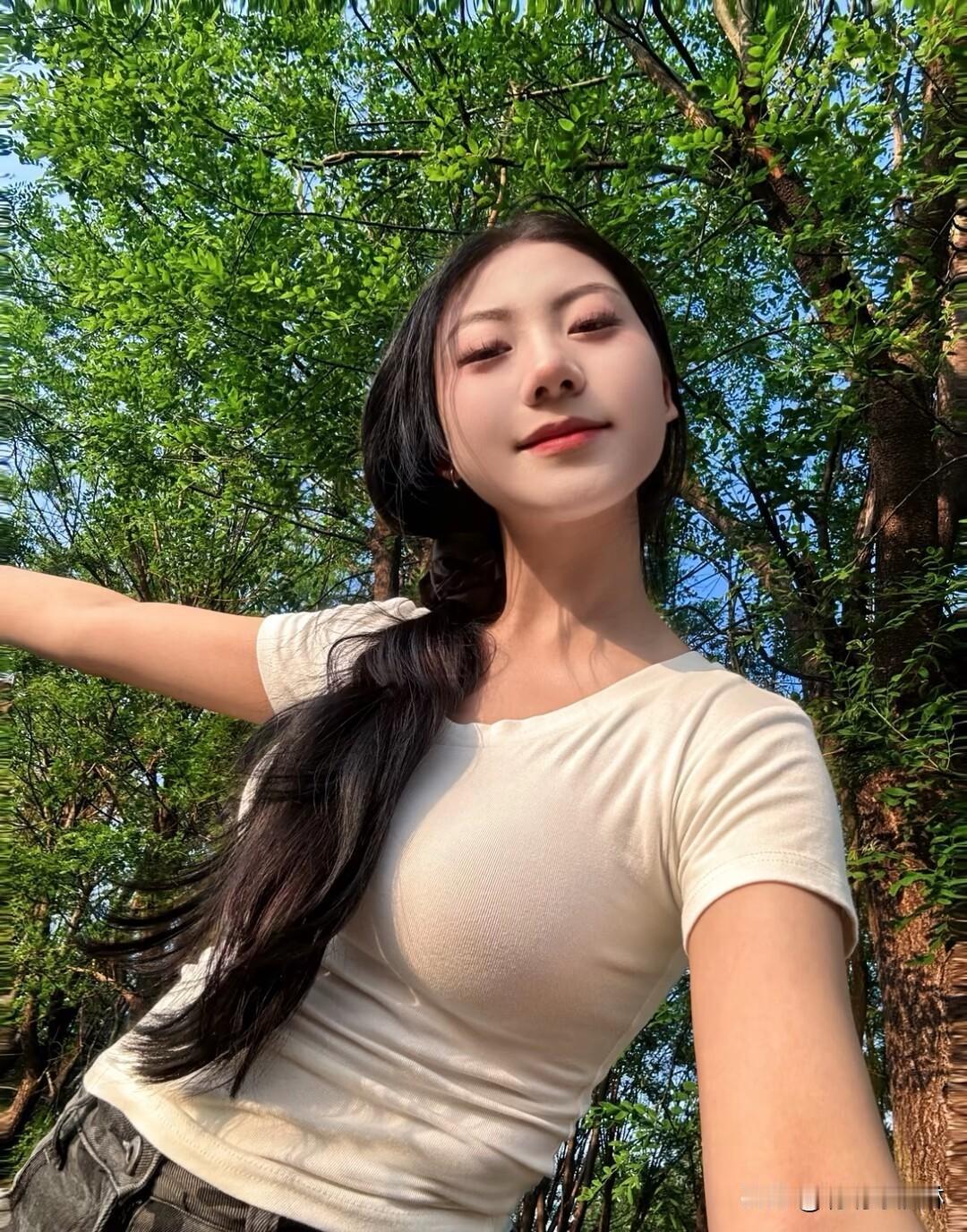 清新穿搭,粉色连衣裙,绿树掩映下的甜美自拍