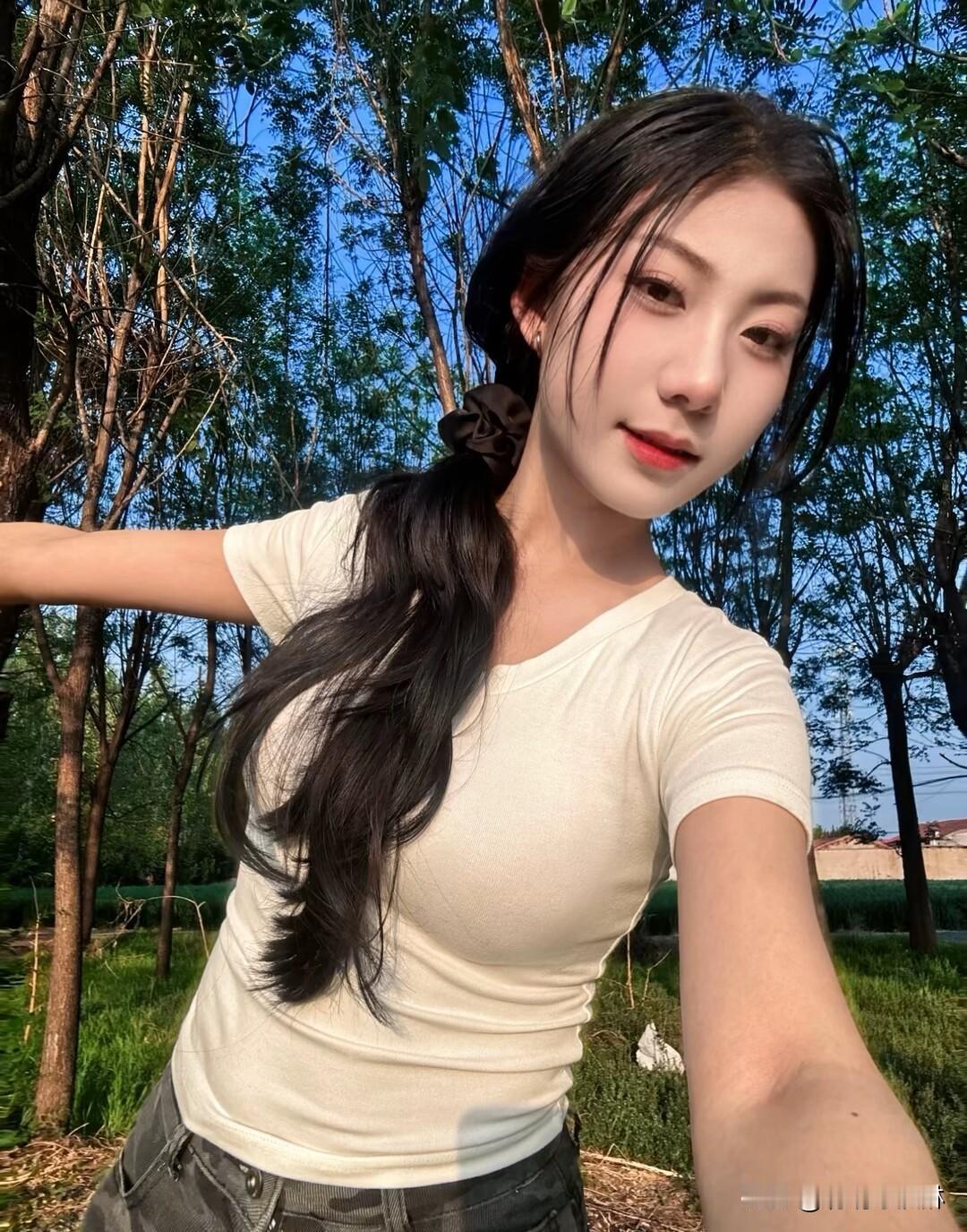 清新简约风,白色无袖上衣搭配自然妆容,简约而不失优雅。