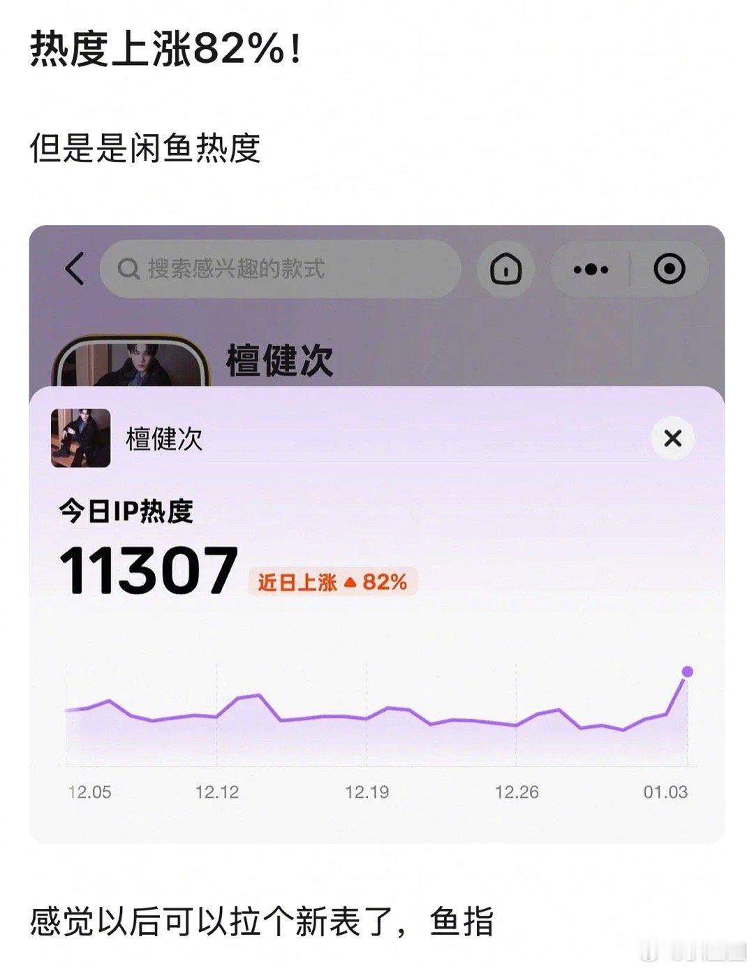檀健次热度上涨82%!但是是闲🐟热度~