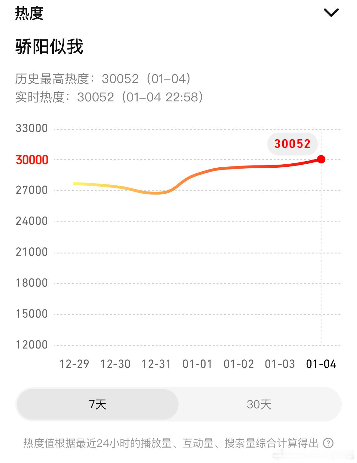 骄阳似我 腾讯热度昨晚29390,马上迎接热度30000,虽然快23点了,伪周日真工作日涨涨涨涨涨涨的不讲究————————果然赶在11点前破了粉丝别嘴硬了,天天追数据的都知道咋回事骄阳似我腾讯热度破30000,骄阳似我数据骄阳似我 你把我害惨了
