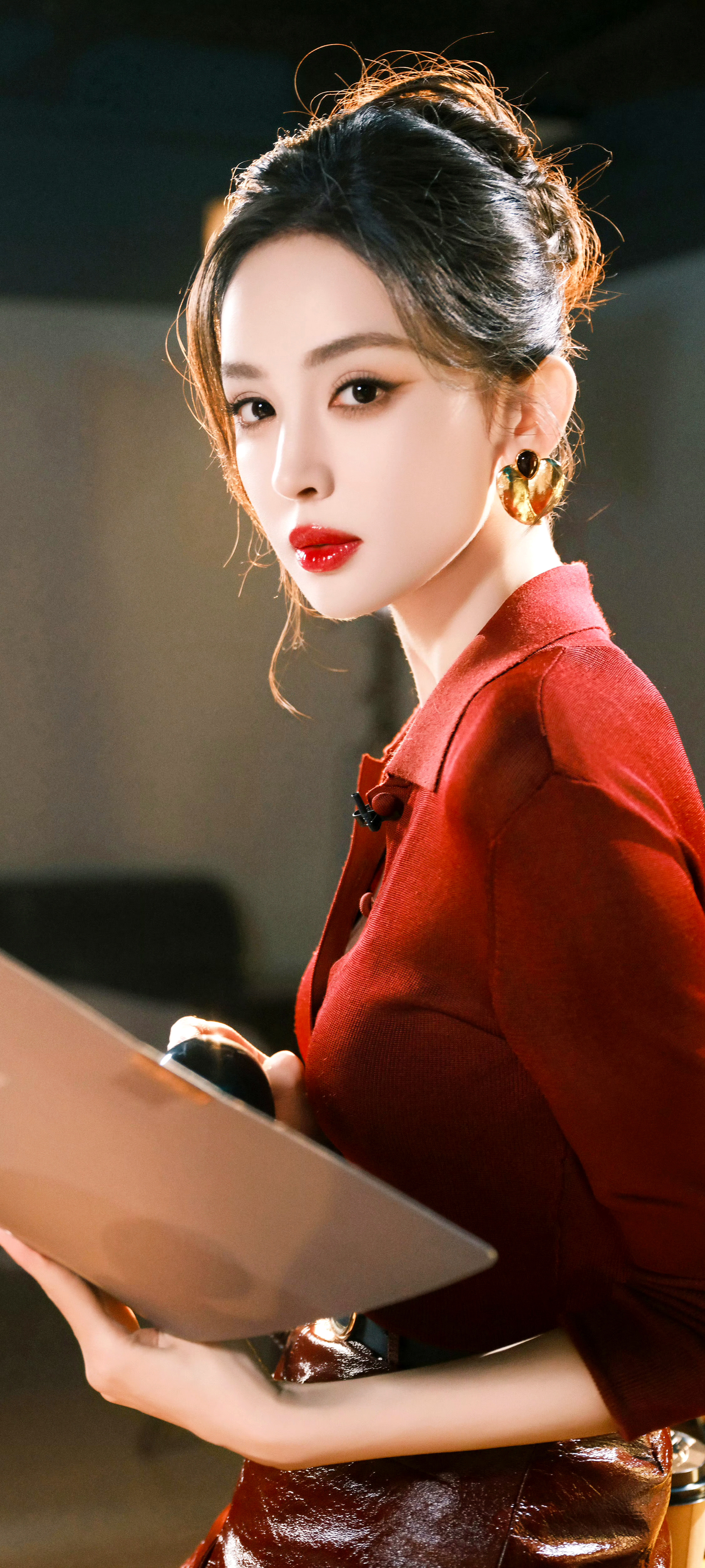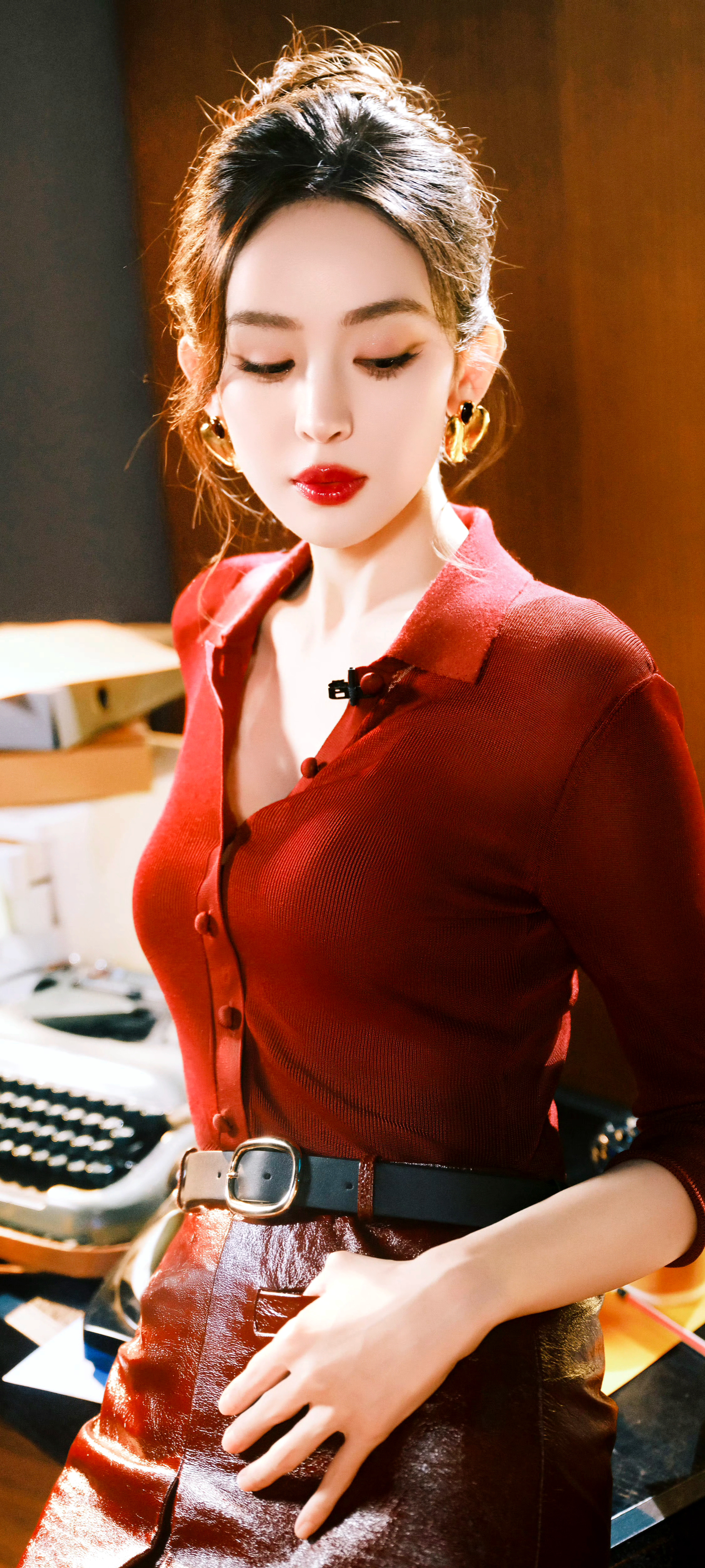 娜扎 红唇 红衬衫 红皮裙 红皮靴❤️❤️❤️