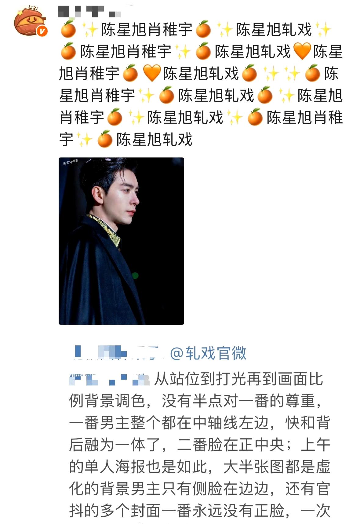 我的今日状态:😁轻松愉快 我这里的天气:🍂微风 刷到《轧戏》的海报争议,我盯着图看了半天,还真能看出点门道。 陈星旭站在左侧快贴边了,卢昱晓反倒占了中线位置,打光也明显往女方那边偏,男主的面部光线暗了不少。 作为一番男主,海报里的视觉占比和待遇确实显得敷衍,也难怪粉丝会觉得没被尊重,换谁看了都得膈应一下!