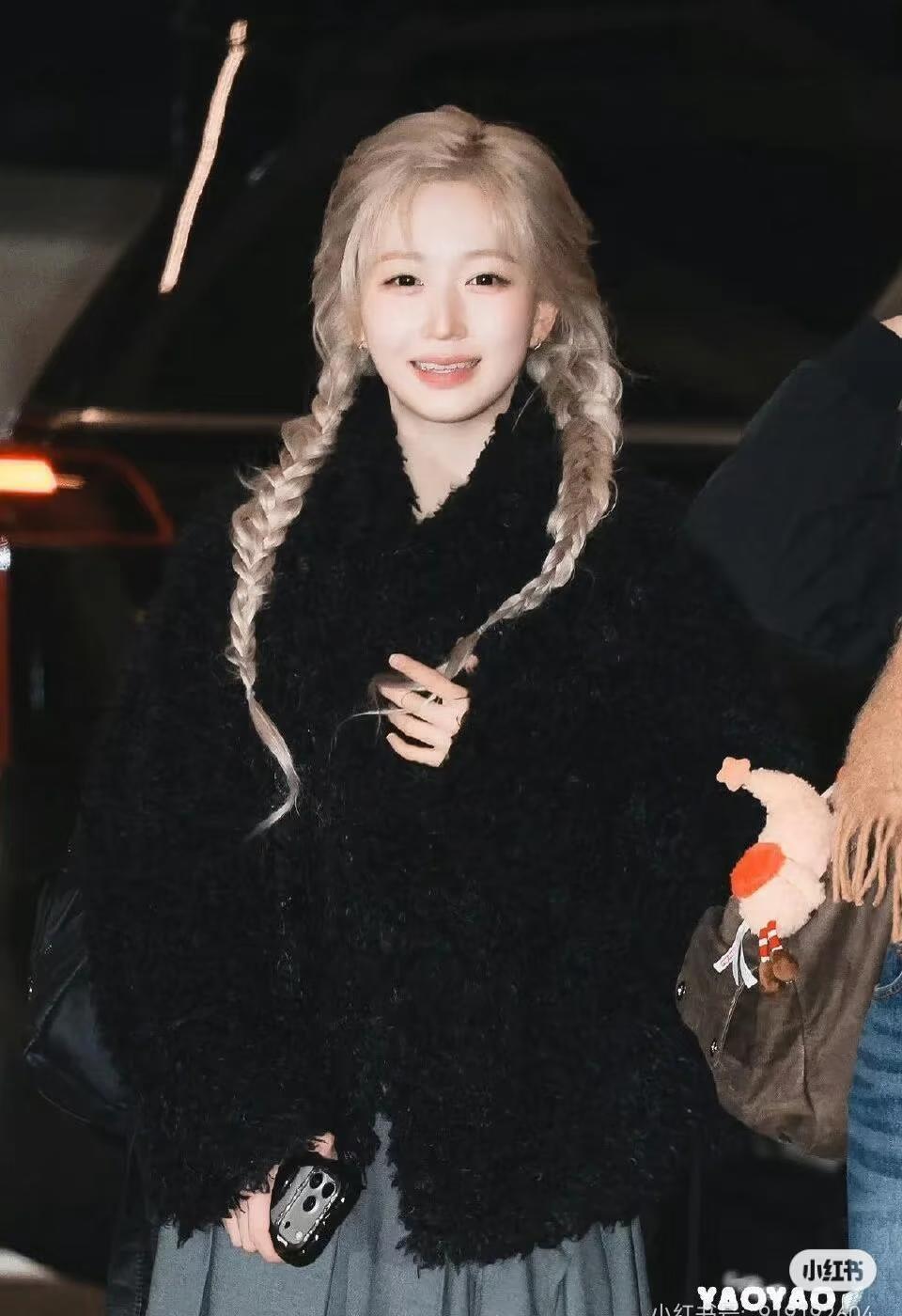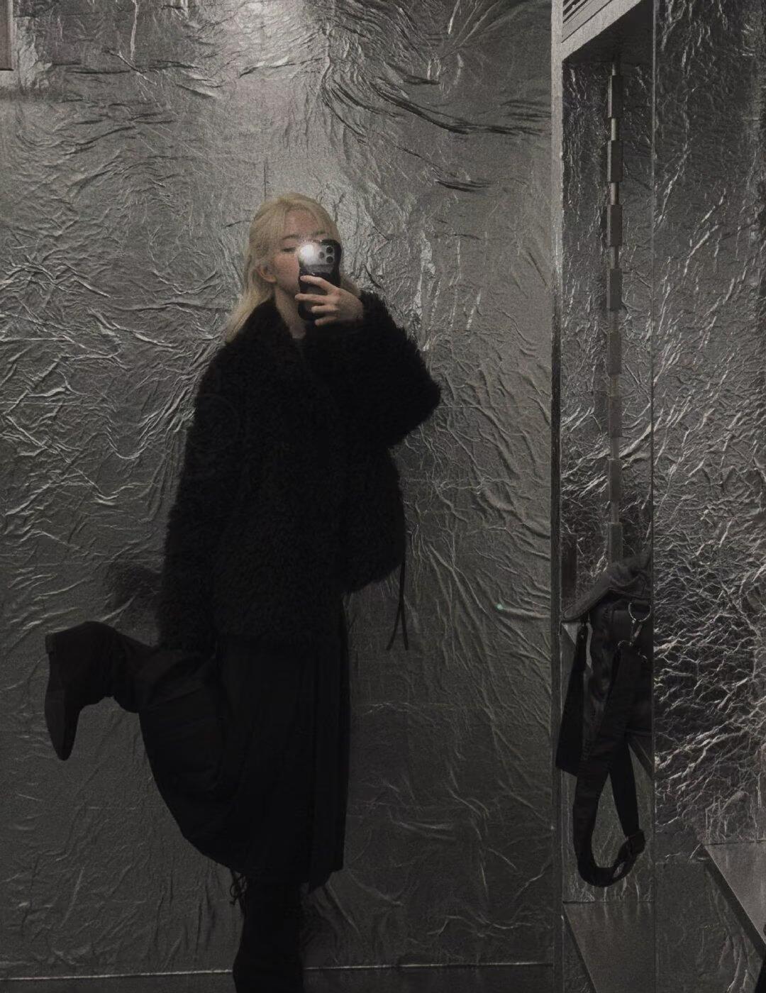 【已找到】吴海媛黑色毛绒外套是谁家的 有宝宝知道吗 感觉很好看 二编:已找到 见图1 吴海媛 穿搭 吴海媛同款 机场穿搭