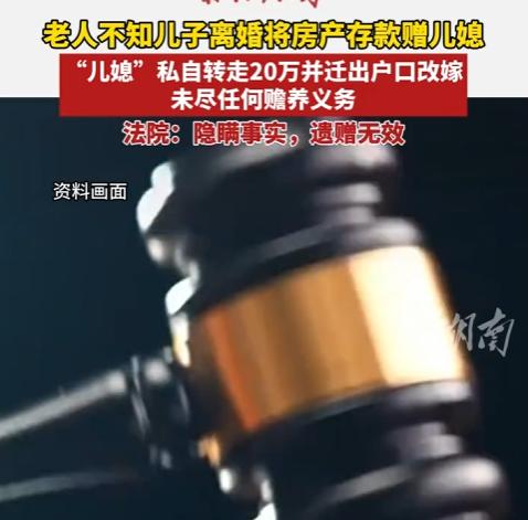 一片真心喂了狼,九年善意遭暗欺!南宁陆某甲夫妇的遭遇,把人性凉薄刻到极致 —— 老两口压根不知儿子已和儿媳韦某判离,满心盼着家庭完整,主动立下遗赠,将房产存款全赠韦某,只求她留下照料起居。 可韦某早已知晓离婚结果,却揣着明白装糊涂,不仅全程隐瞒,离婚后还光速改嫁,从没想过履行照料义务。刚稳住老人拿到遗赠承诺,她就转头卷走 20 万存款,利落迁出户口,彻底消失在老人生活里。 这一瞒就是九年,在银行取钱时才发现辛苦攒下的存款早就被转走。期间老伴陆某甲病逝,前儿媳别说赡养照料,连葬礼都未曾露面,把老人的善意当成敛财捷径。梁某彻底寒心,果断撤销遗赠对簿公堂。 让人瞠目结舌的是,韦某被要求返还 20 万时,竟满肚子委屈直呼冤枉,打心底觉得这钱就该是自己的。法院审理直击要害:老人基于 “仍是儿媳” 的错误认知赠与,遗赠附了照料家庭的条件,目的早已落空,赠与无效。最终,韦某上诉被驳回,维持原判。 贪婪遮不住心虚,欺骗逃不过法眼! 把他人善意当愚笨,终将为自己的凉薄买单。