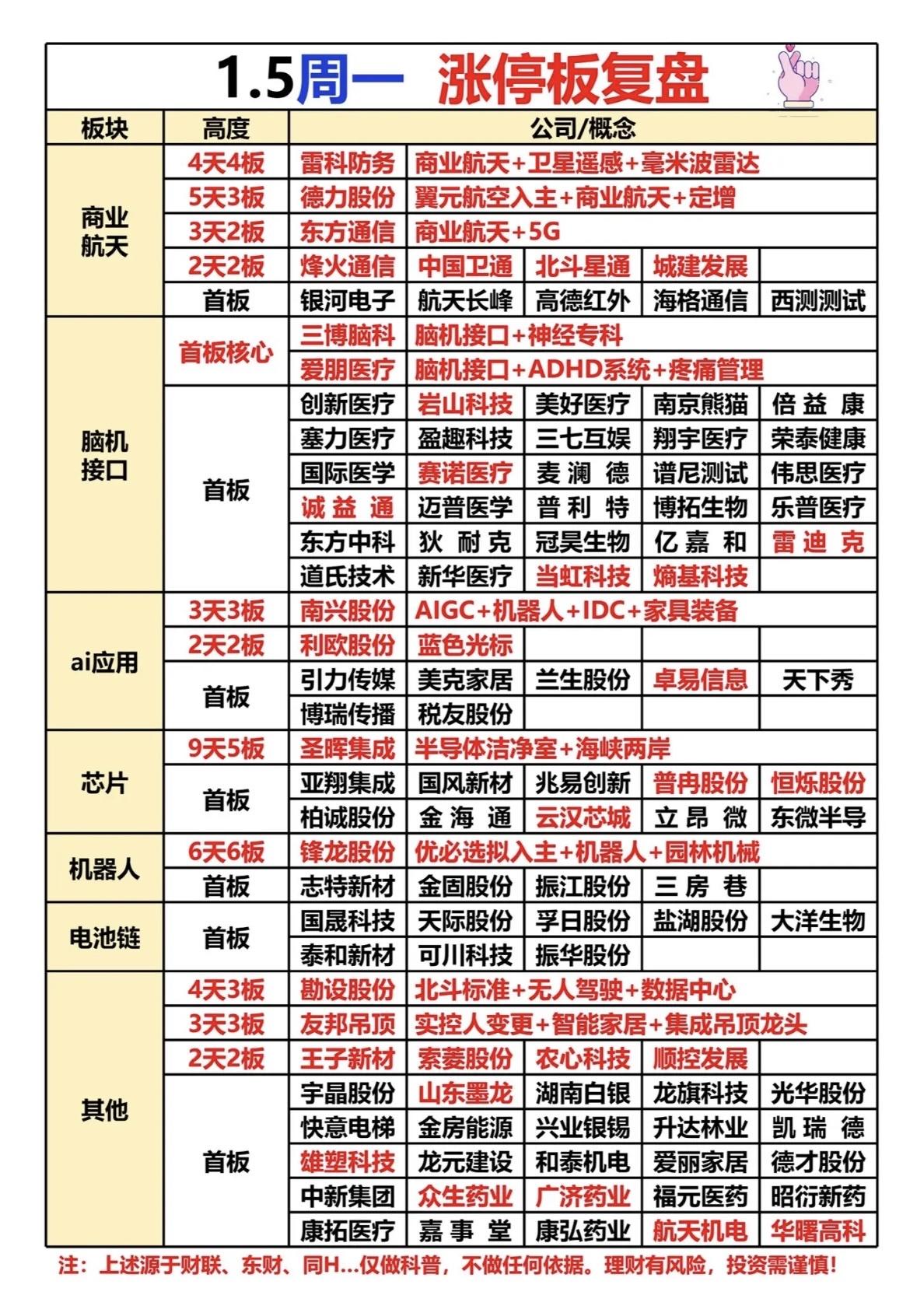 周一大盘复盘:板块轮动,机会与风险并存 商业航天与脑机接口概念股活跃,机器人及芯片板块表现强势,市场热点轮动加速,投资需谨慎。