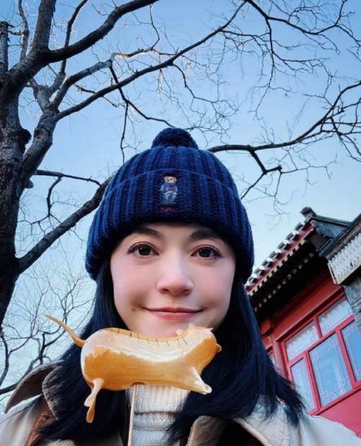 姚晨分享新年旅行第一站美照,穿米色长款大衣吃着美食好开心