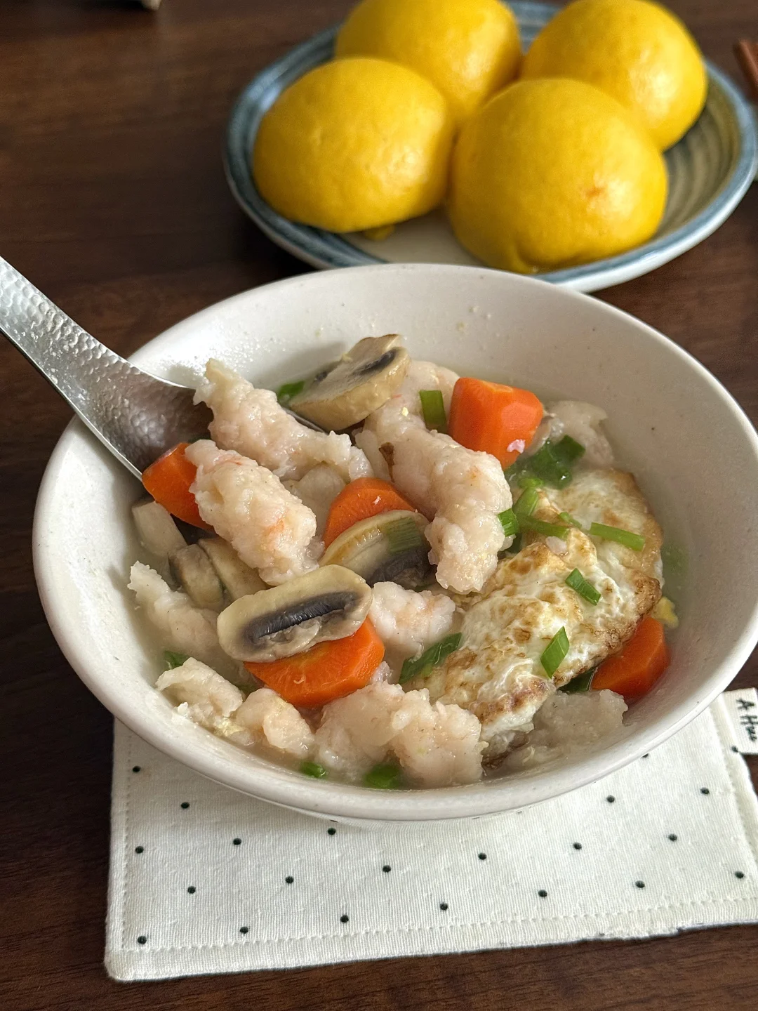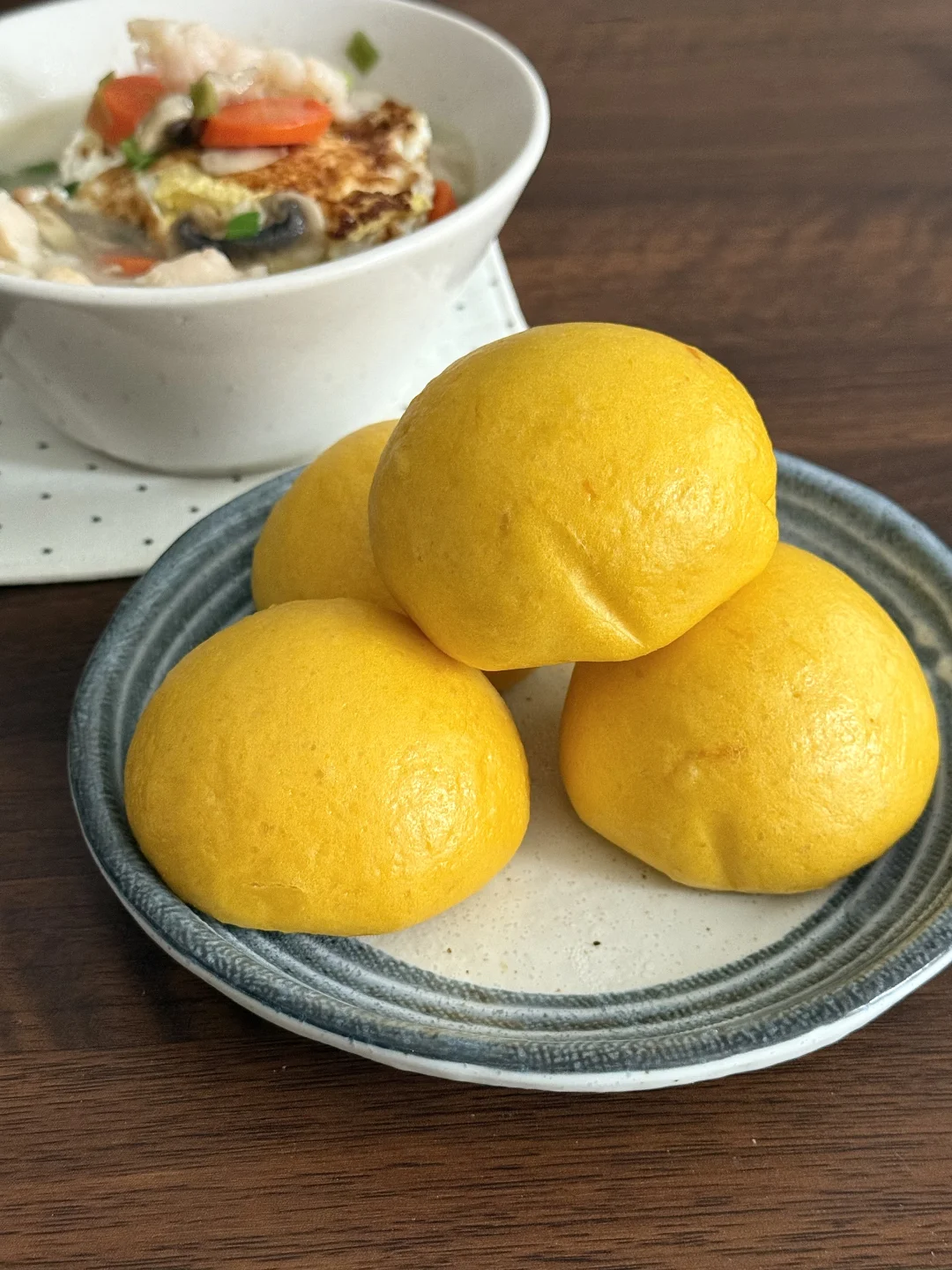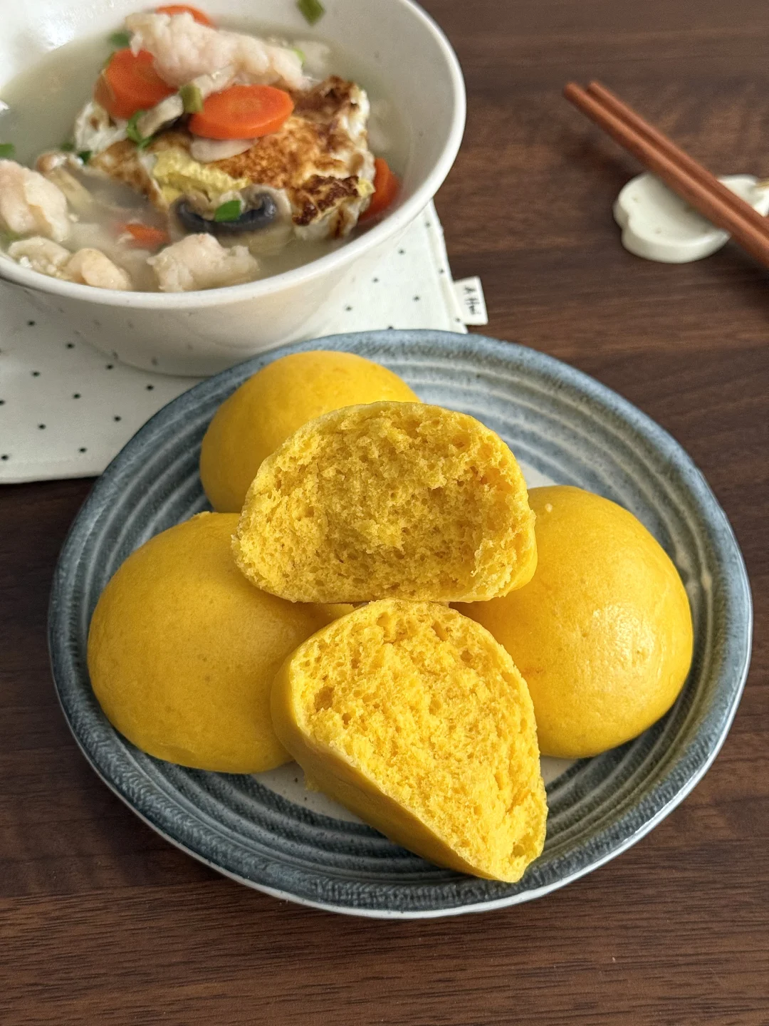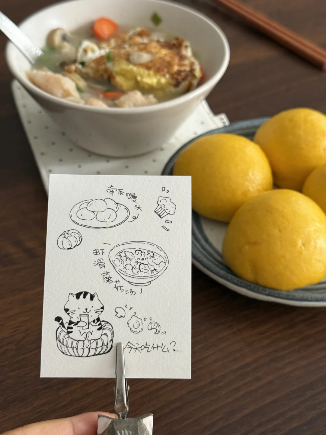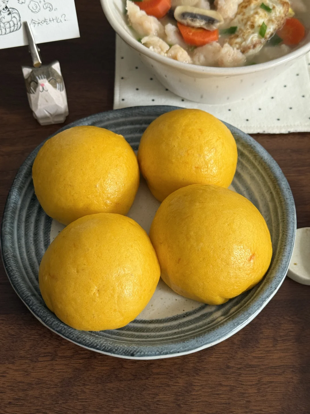 今日午餐:南瓜馒头,虾滑蘑菇汤 中午就蒸了一锅南瓜馒头,用的一发,相对省事儿。别看卖相普通,扎实有嚼劲,南瓜味儿挺浓。 顺手煮了个汤,虾滑现成的,方便。扔几片蘑菇,胡萝卜,放个荷包蛋,汤就鲜了。这一餐,吃得热乎、落胃。 自己做饭的踏实感,就在这儿了。