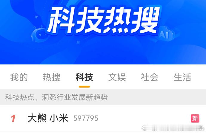科技热搜第一了,大熊NB啊