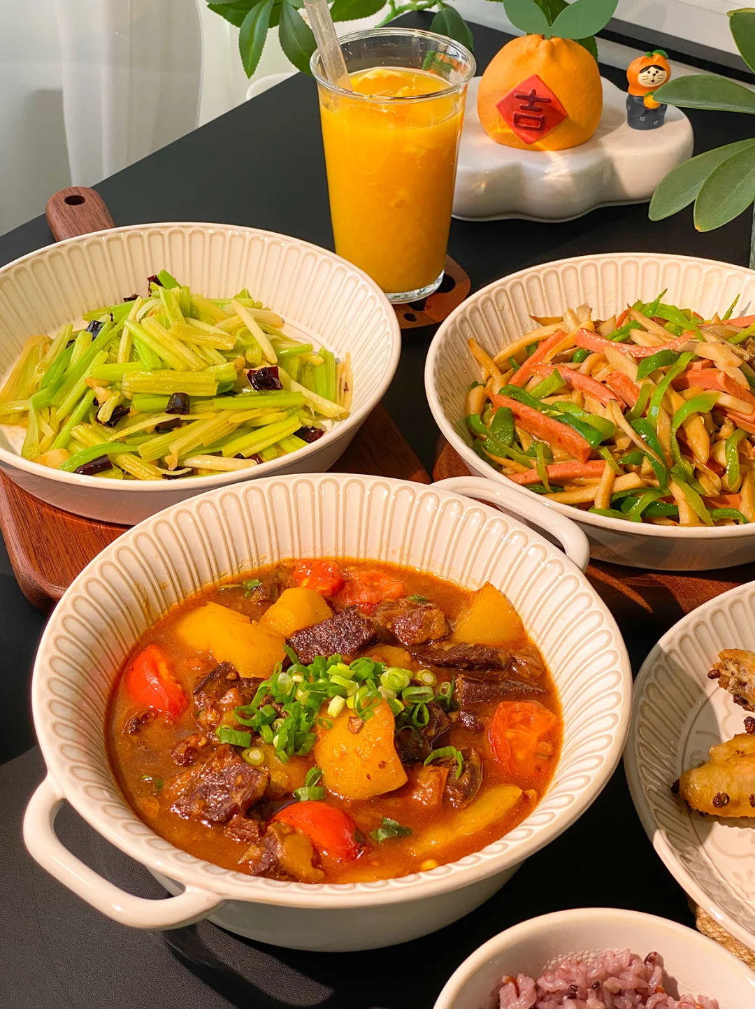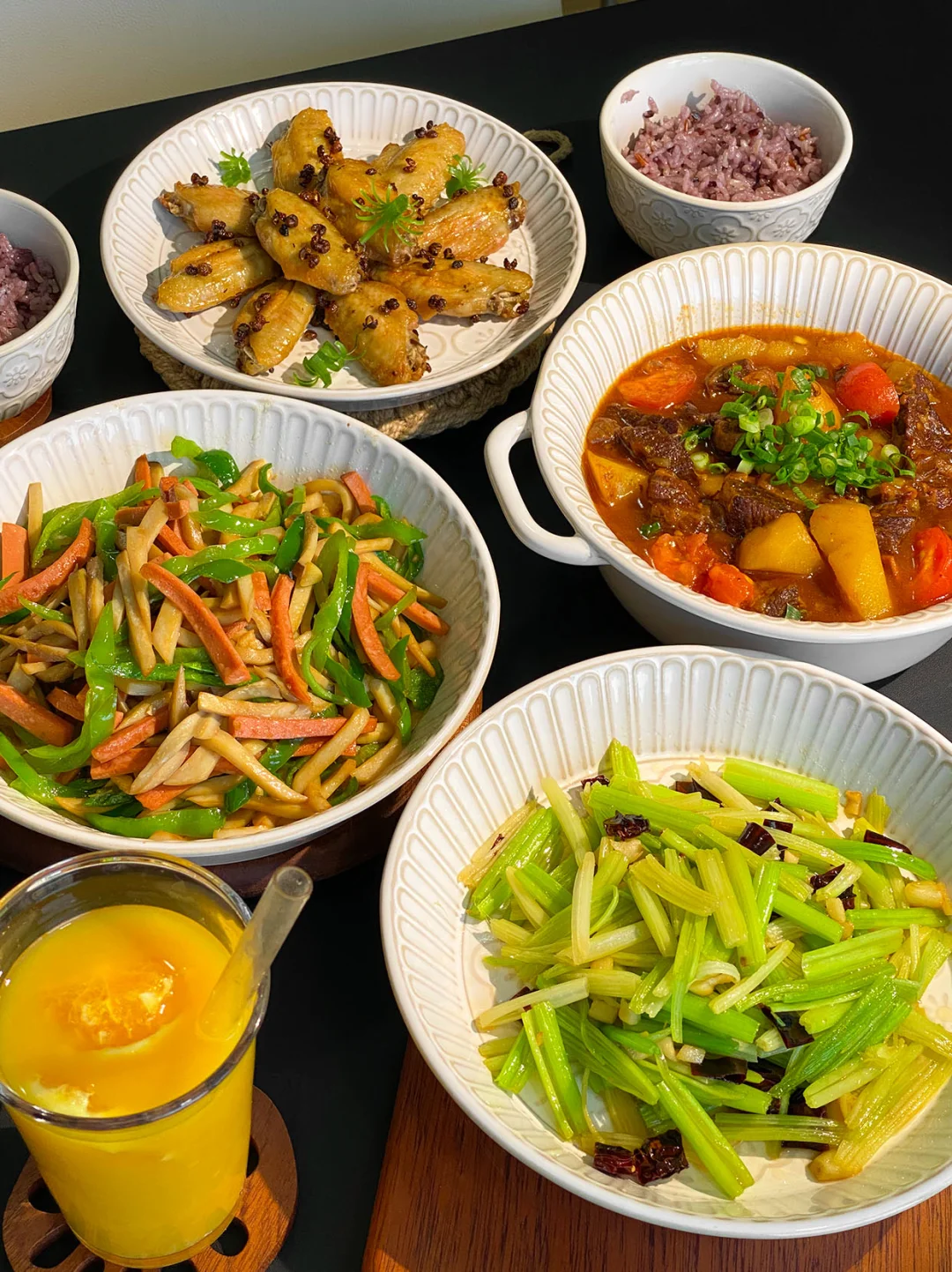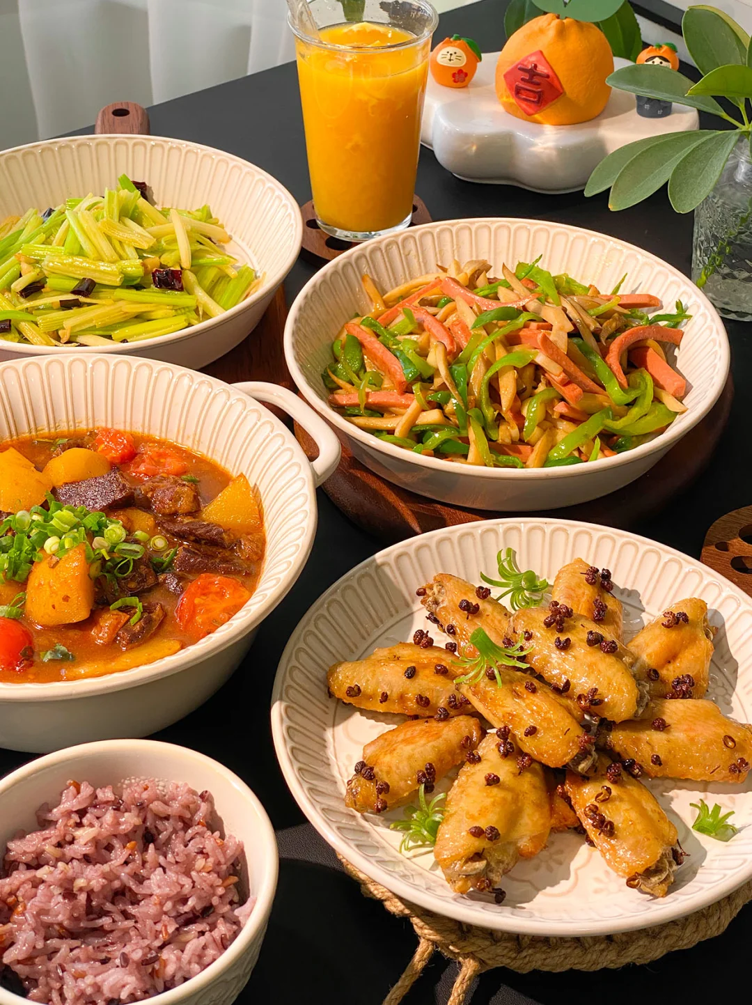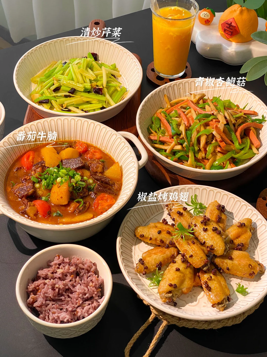 今日菜单🥣: 1️⃣椒盐烤翅 2️⃣番茄牛腩 3️⃣青椒杏鲍菇 4️⃣清炒芹菜 鸡翅做法超级简单,烤完皮薄薄的还带点焦香,肉很嫩,很好吃!特别值得试试~ 转眼就是 2026 第一个工作日啦⏳ 愿宝子们新的一年知足上进,温柔坚定 在等花开的日子里 好好吃饭,好好睡觉 三餐暖胃,万事顺意✨ 前路漫漫,阳光满路,我们终将如愿!