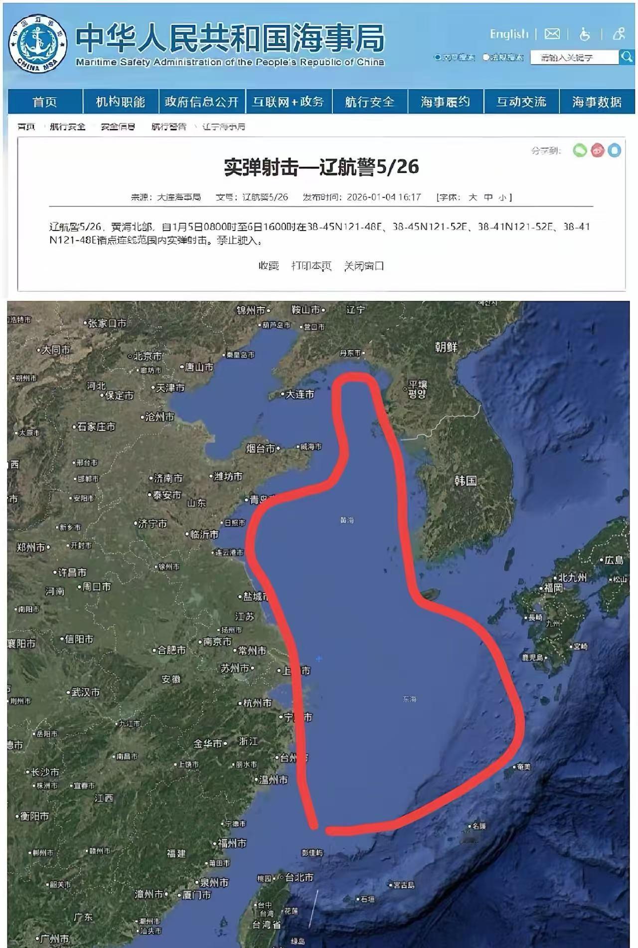 做最坏准备,中国在黄海北部区域演练“区域拒止”能力 根据国家海事局消息,1月5日8时至6日16时在黄海北部进行实弹射击,而黄海北部通常是外部势力入侵我国的必经之路。从2025年开始我国就在黄海和渤海区域举行过多次实弹射击和军事演习。 黄海北部是咱们京津门户、海防命门,现在外部势力在周边频频搞联合军演,这演练就是亮明态度:我的家门口,绝不允许撒野! 2025年以来,从渤海到黄海,咱们的实弹演练就没断过,尤其是美日韩搞“自由之刃”演习、美军B-52H轰炸机窜扰后,解放军总能及时亮剑,回应得又快又硬。 “区域拒止”简单说就是让别有用心的势力“进不来、展不开”,东风导弹、万吨驱逐舰这些家伙事儿,就是咱们的底气,连兰德智库都承认,美军在第一岛链内没优势。 现在的目标很明确:护主权、保统一。现在有些势力在台海问题上胡说八道,还想拉着盟友搅局,黄海演练就是敲警钟——谁敢破坏国家统一,谁就会撞上咱们的硬防线! 还有就是当今世界太乱了,提前演练“区域拒止”能力非常有必要,中国的底线是本土不能被入侵。所以在周边海域进行实弹射击和演习非常有必要。这个样才能时刻警醒! 大家认为呢? 欢迎在评论区说说你的看法。
