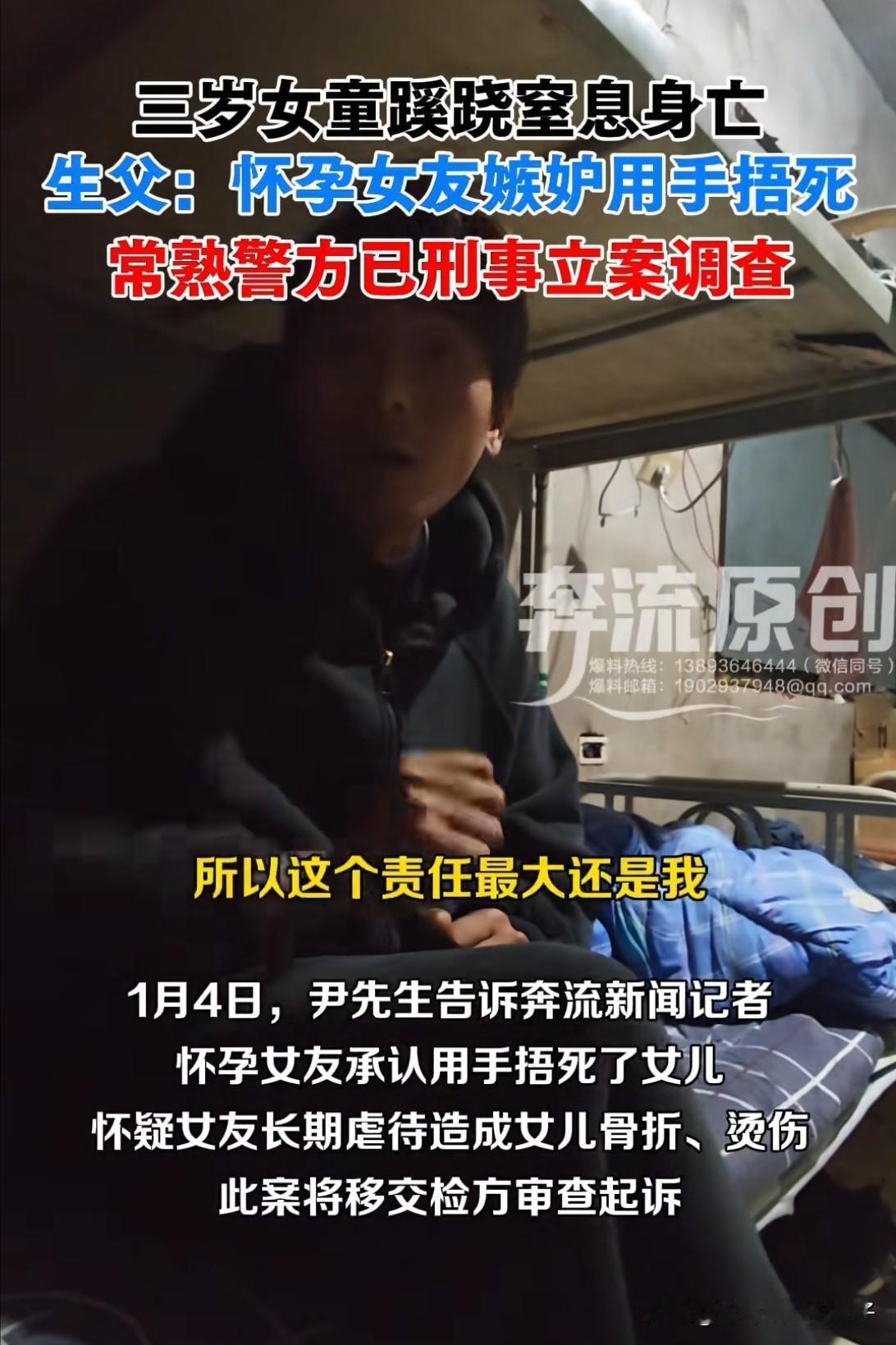 真狠心的后妈!江苏一男子离婚后新找了个女友,见女友平时对他和自己女儿都很好,以为遇到了真爱,对方不嫌弃自己有个女儿,可没想到这一切都是假象。女友怀孕后,担心她和孩子争宠,居然狠心捂死了男子3岁的小女儿! 说实话,虽然挺同情男子的遭遇,更心疼无辜的3岁小女孩,但这一切真的和男子脱不了干系。 当初男子通过网络认识该女子,没多久对方就住进了男子老家。俩人生活一段时间后,男子父亲发现女友会打孩子,明确表示不同意他们在一起。 可男子却毫不在意,为了和女友在一起,他带着孩子跟着女友一起去江苏打工,还把孩子全权交给女友照顾。有时候男子回家发现女儿身上有伤痕,女友谎称是孩子自己摔的,男子竟然真的相信了! 现在男子回想起来,悔得肠子都青了,他自己也承认,就是因为太相信女友,才酿成了这场悲剧! 去年8月21日,女的告诉男子她怀孕了,男子当时还很高兴,说他以后就儿女双全了! 谁能想到,仅仅两天后的8月23日,女儿就被这位“准后妈”狠心捂死。更可恶的是,她还编造谎言,说孩子是贪玩把塑料袋套在头上,意外窒息身亡! 这场悲剧里,孩子爸爸的责任也半点都推不掉。家人的提醒当耳旁风,孩子身上的伤不当回事,最后换来的,是一辈子都抹不去的悔恨!