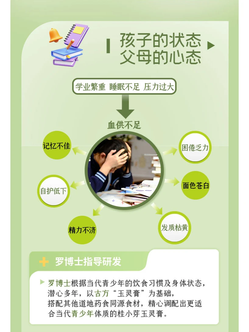 以古方“玉灵膏”为基础,再由罗大伦博士根据当代青少年的饮食习惯及身体状态配比,帮助孩子调整状态,让孩子们有更多的精力迎接新的挑战❗️❗️