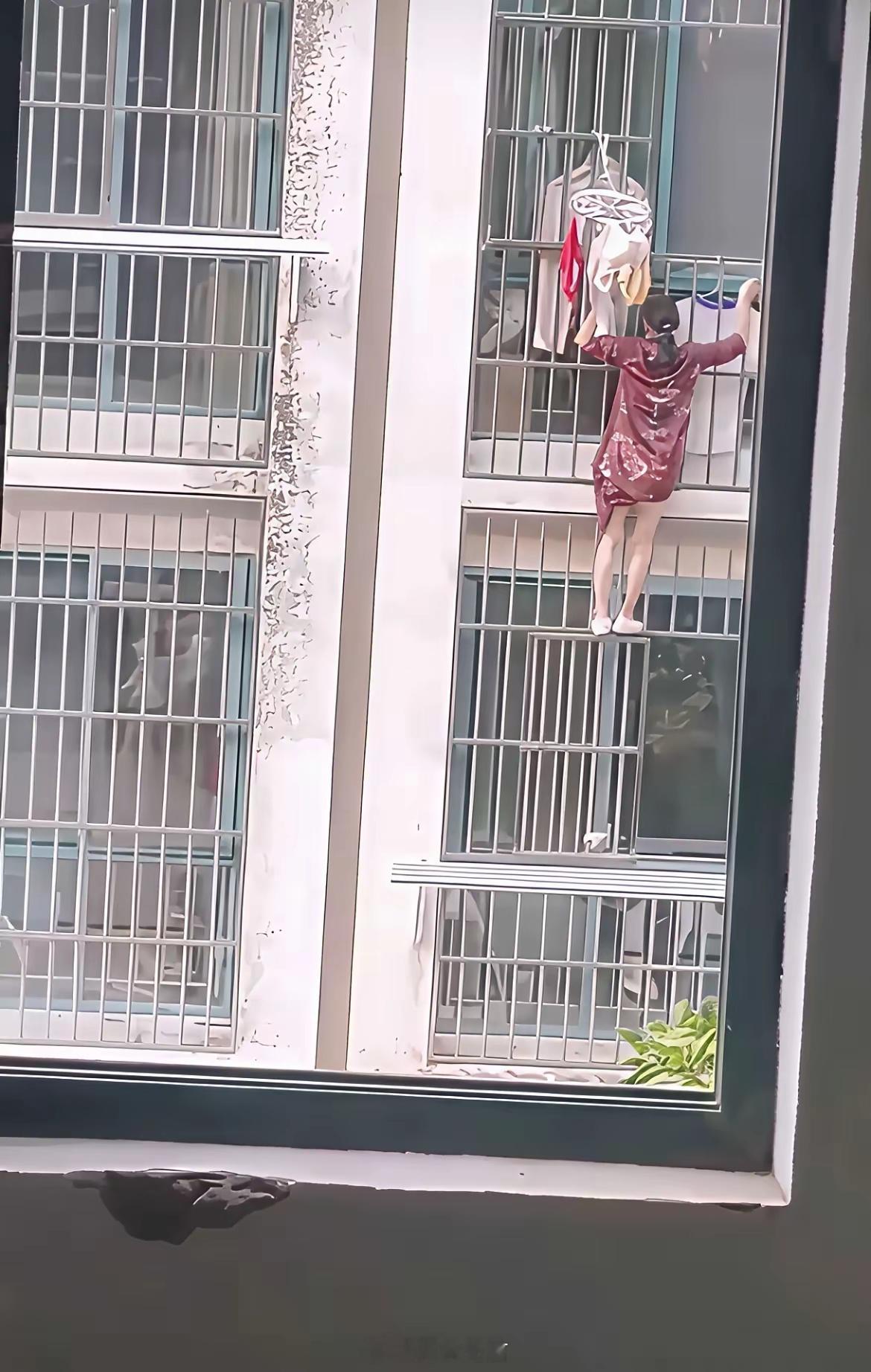 为了几分钟,这样爬楼。万一掉下来了毛都没有