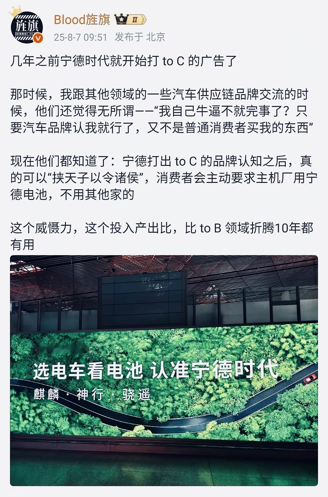 2023年宁王开始大做广告,学英特尔模式建立“CATEL Inside”,让消费者反推汽车厂优选宁王电池。 其实这个营销策略,早在2020年就建议给了宁德时代,只不过那时候他们还在顾虑汽车厂感受而没有动作。 为什么三年后他们不再顾虑,机场高铁户外广告漫天铺。行业竞争使然。 又比如去年理想的i6上市时,主机厂应该感受到宁王做终端营销的效果了。 地平线余凯也看在眼里。 希望地平线成为第二个万亿市值的中国汽车供应链国际品牌。 五千亿也行。