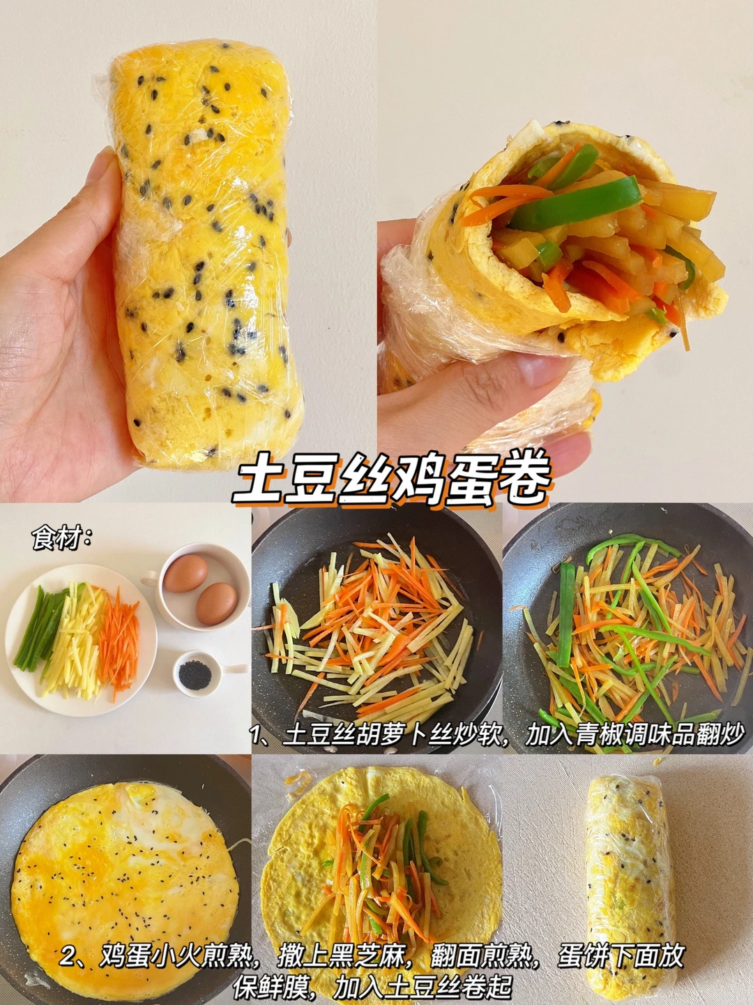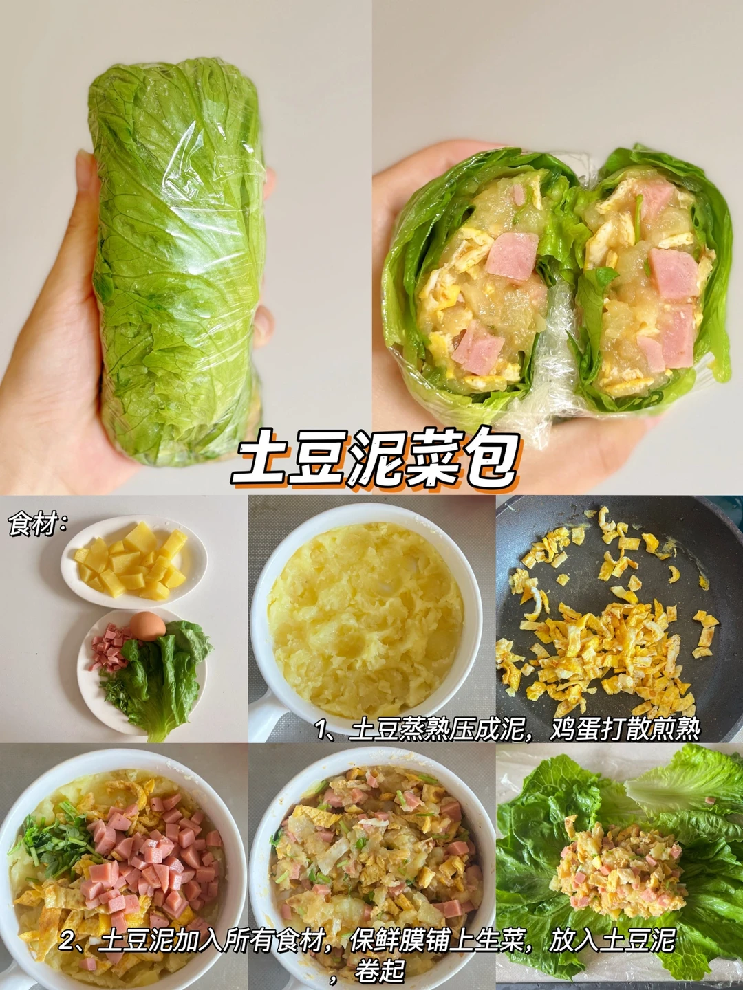 清爽好吃,而且热量也很低哦,减脂的姐妹可以安排起来,操作也很简单,平时用自己喜欢的食材一卷,一口下去料足又有饱腹感✌️ 🥬土豆丝鸡蛋卷 🥬生菜鸡排三明治 🥬土豆泥菜包 🥬虾仁春卷