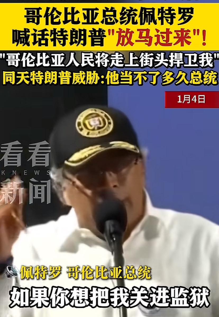 哥伦比亚总统也是个硬汉,与川普隔空叫板,佩特罗放话,你放马过来,有本事把我关大牢,那试试看!川普回应记者,哥伦比亚问题也很大,他们造毒品还卖给我们,他这个总统当不太久了!记者问,是否也开展一次类似抓捕行动,川普回答说,你这个建议听上去很不错!
