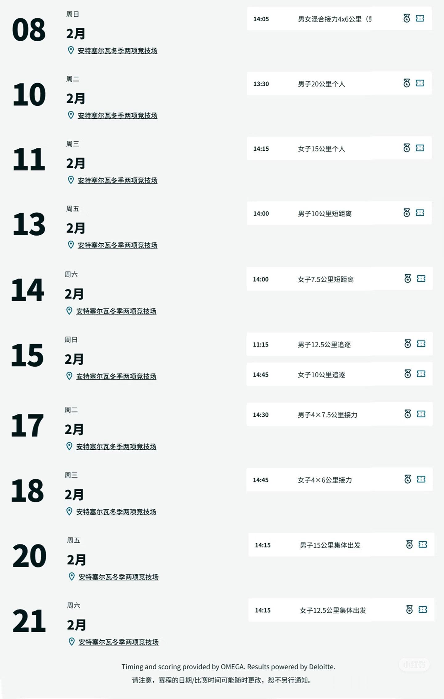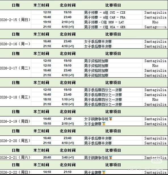 距离米兰冬奥会还有一个月先存一个从各地搜刮来的赛程安排(短道速滑,花样滑冰,冬季两项,冰壶,冰球,滑雪 …… )