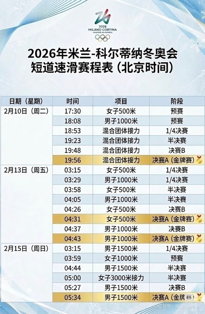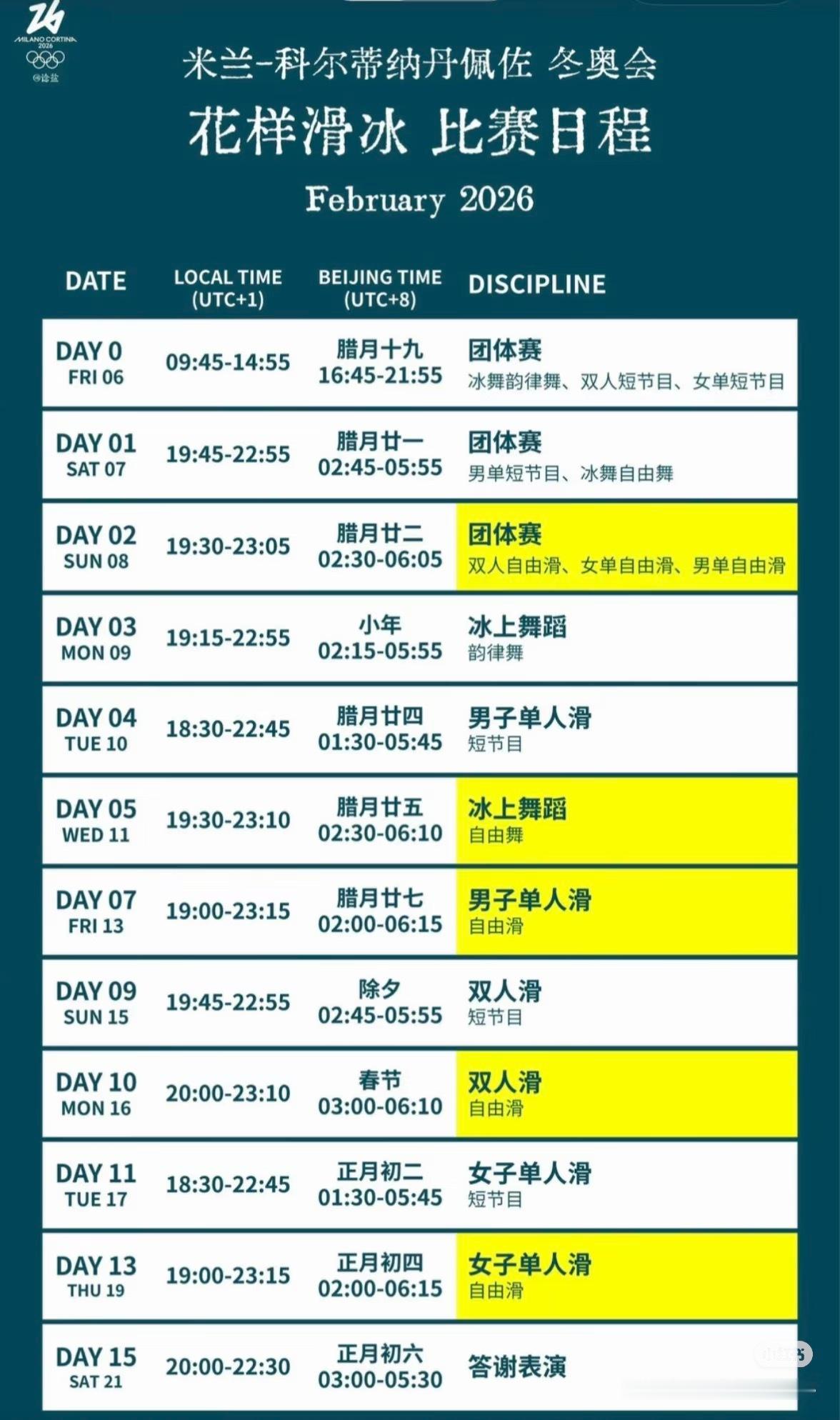 距离米兰冬奥会还有一个月先存一个从各地搜刮来的赛程安排(短道速滑,花样滑冰,冬季